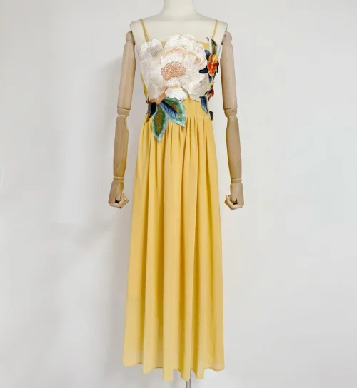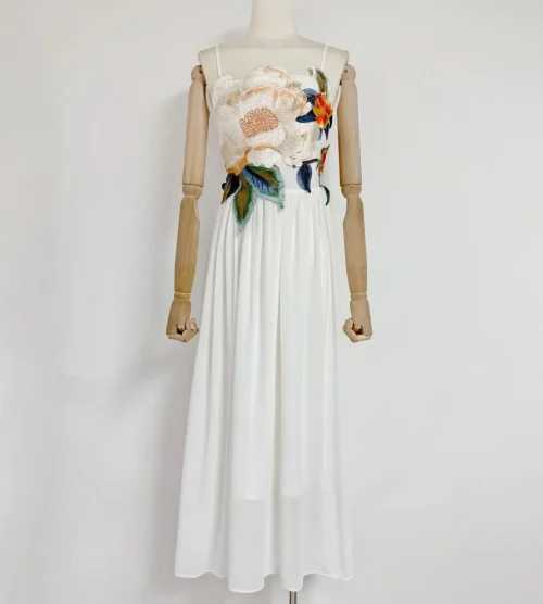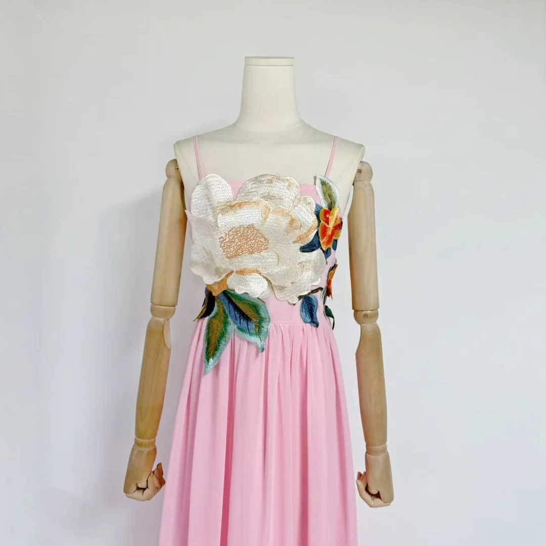 Suspender Dress 2025 Summer Seaside Holiday Style Flower Decoration Long Dresses Backless Fairy Sexy Long Dress Women