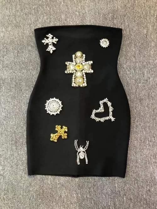 Product Name: sweet Summer Spice for Bandage Dress Set Sexy Backless Tube Mini Diamond Skirt Embroidered Casual Sundress for Club Occasions