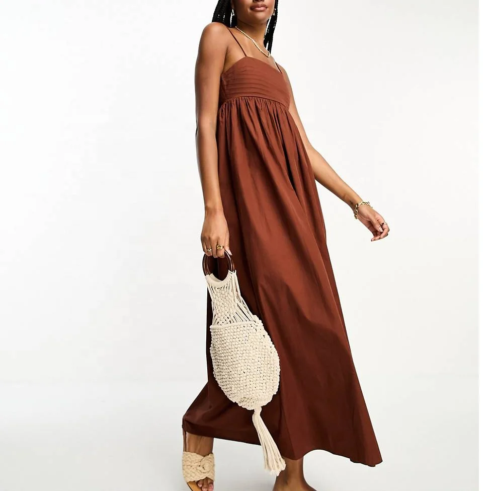 Product Name: Tall Cotton Pleat Bust Babydoll Midi Sundress Square Neck Ruffle Tie Back Regular Fit Holiday Women Dress
