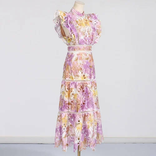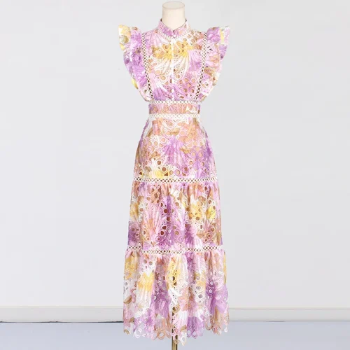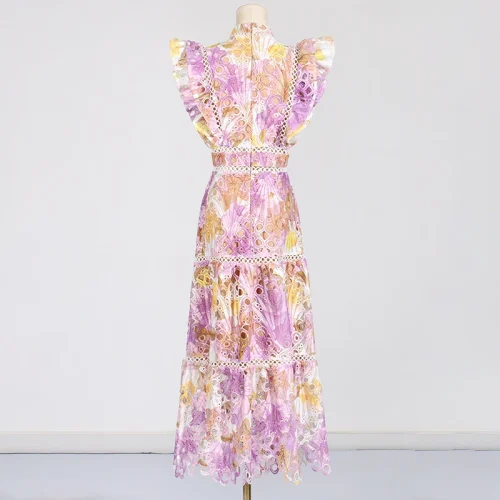 Product Name: TWOTWINSTYLE Colorblock Printing Casual Dresses Flying Sleeve High Waist Hollow Out Elegant Dresses Women