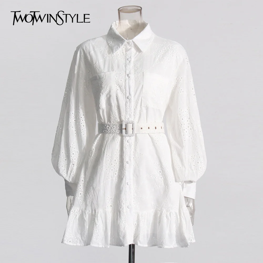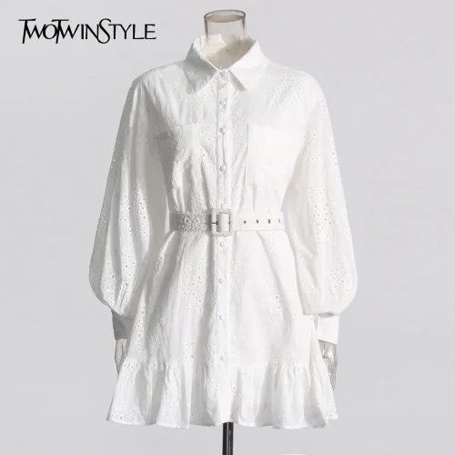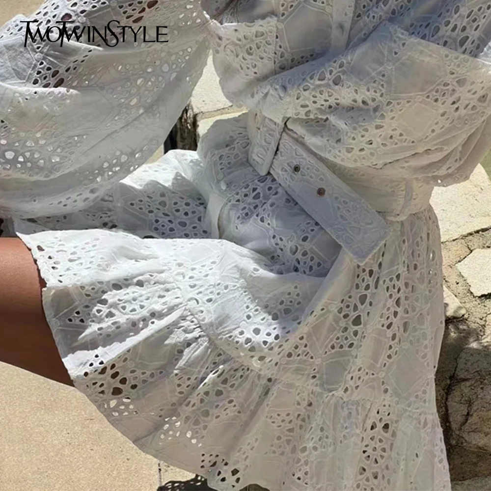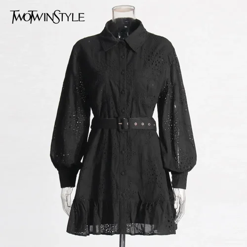 TWOTWINSTYLE Summer Cool Versatile Style Women’s Casual Dress Long Sleeved Hollow Out Dresses Women Summer