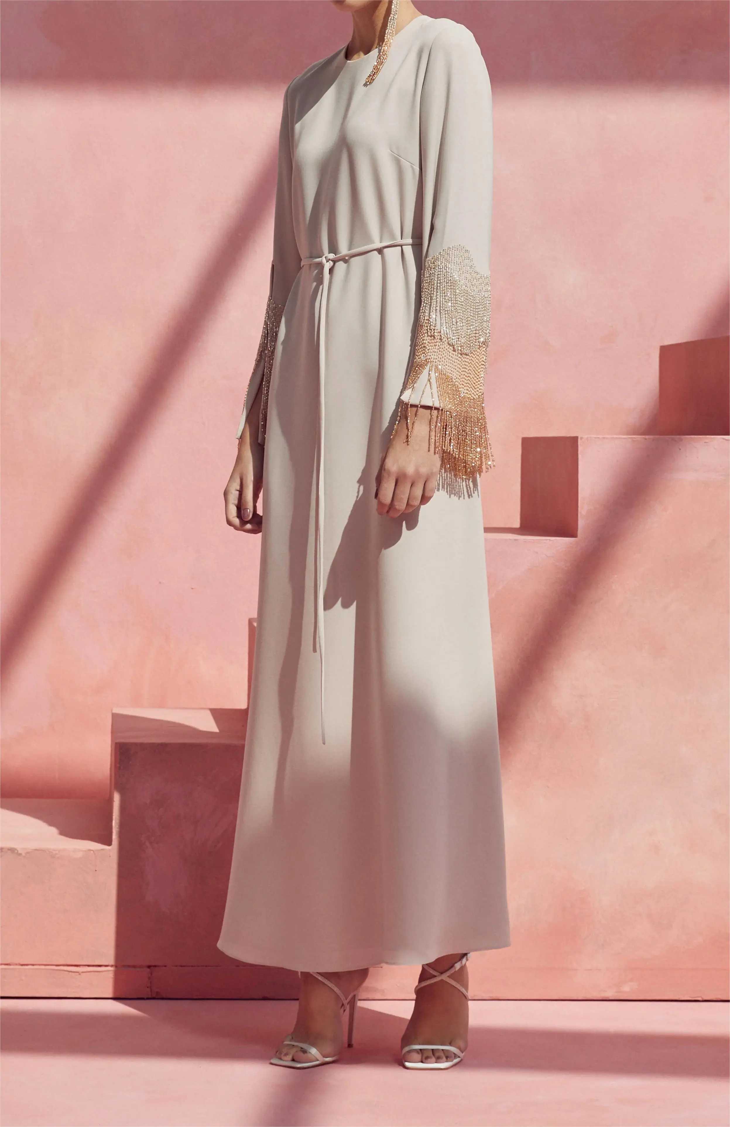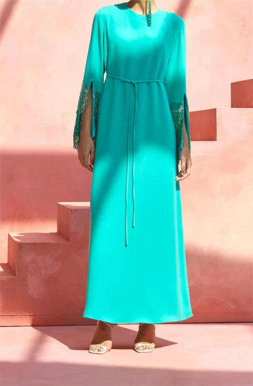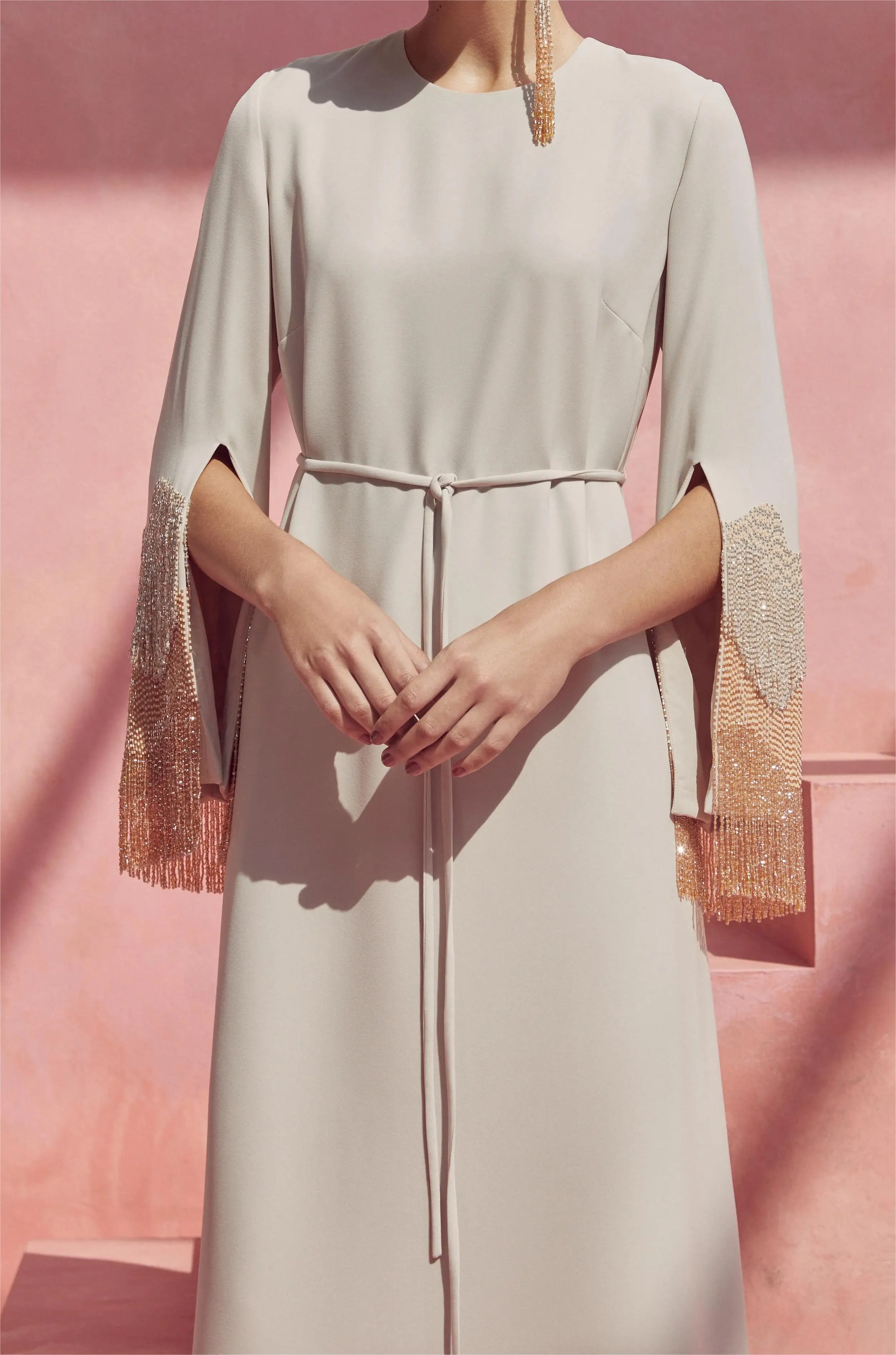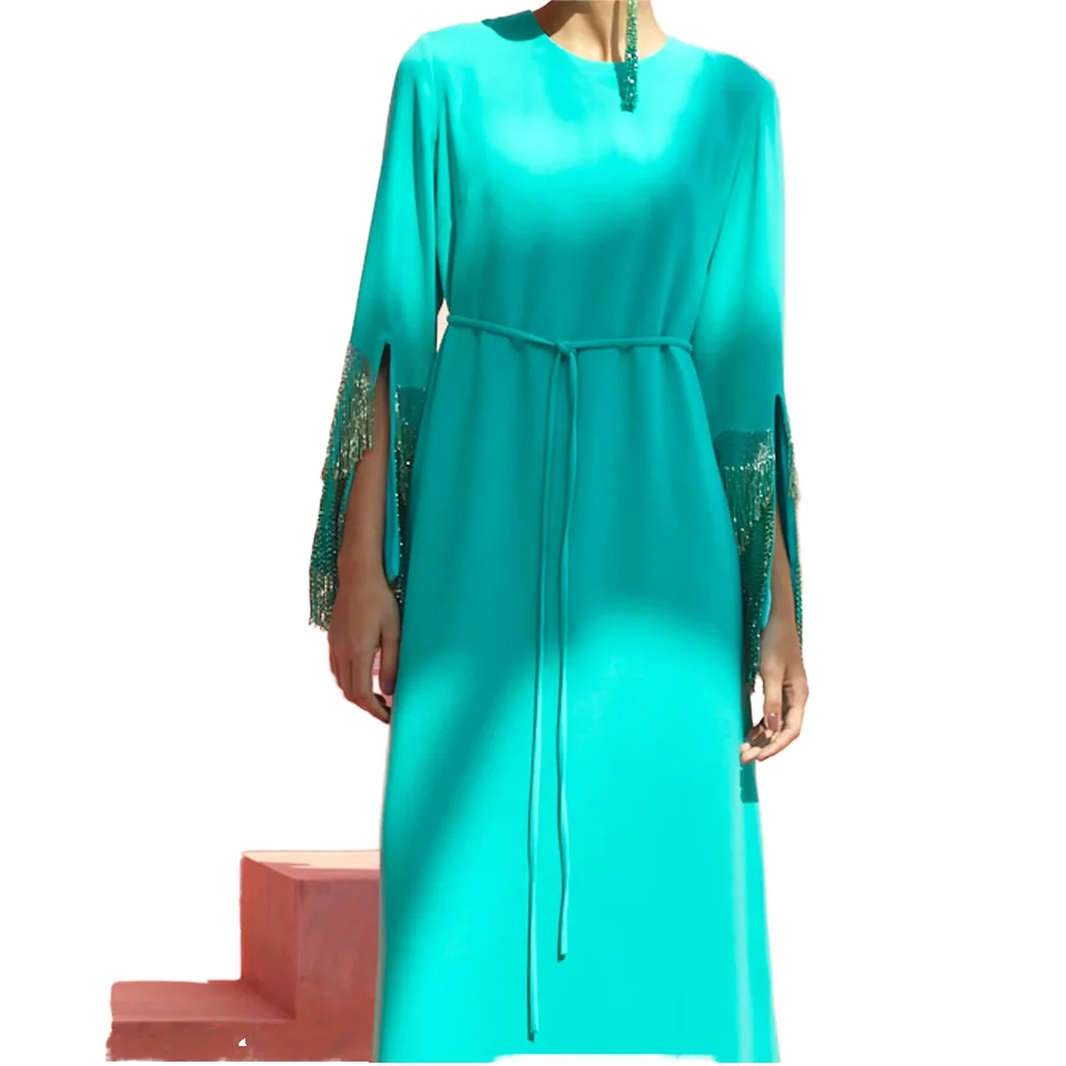 U.Chic 2023 Luxury Modest Solid Hand-Work Women Dress Beading Tassel Design Maxi Lady Dress With Vent Cuff