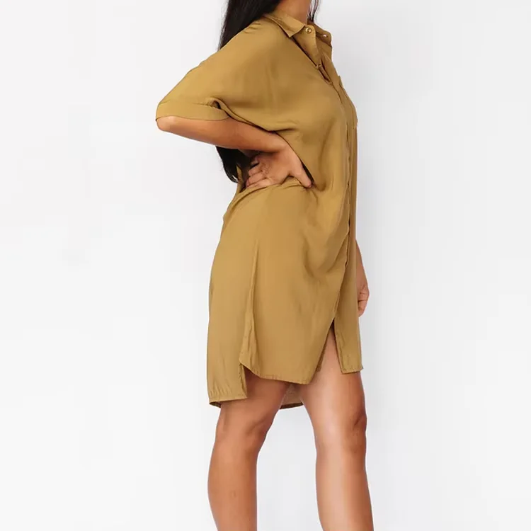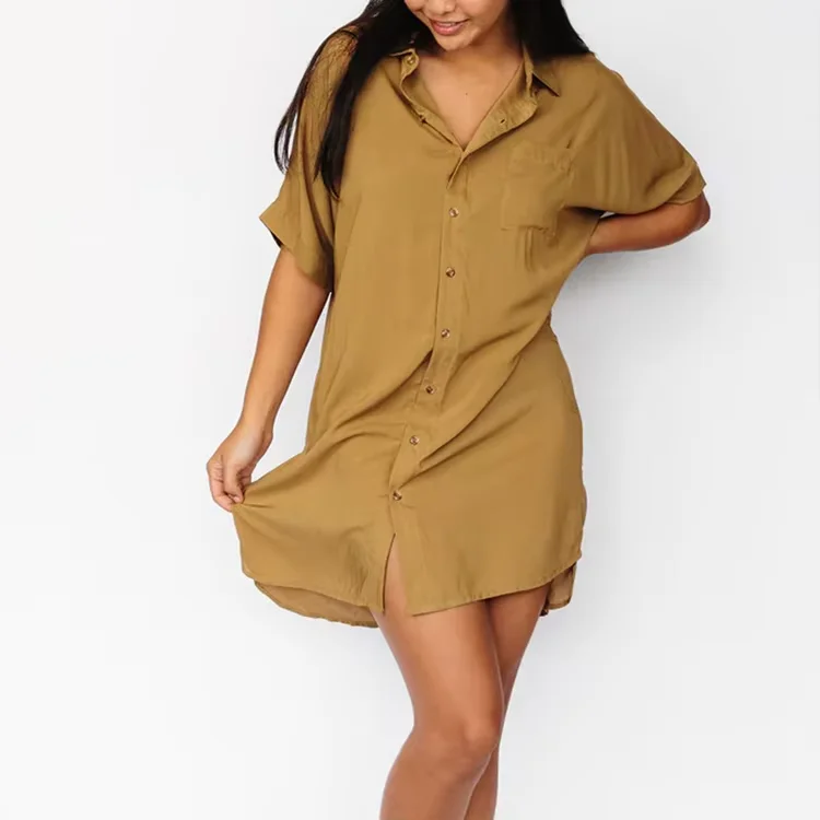 Product Name: USA True to Size Shirt Dress With Pockets LOW MOQ Print Viscose Rayon Women Shirt Dress