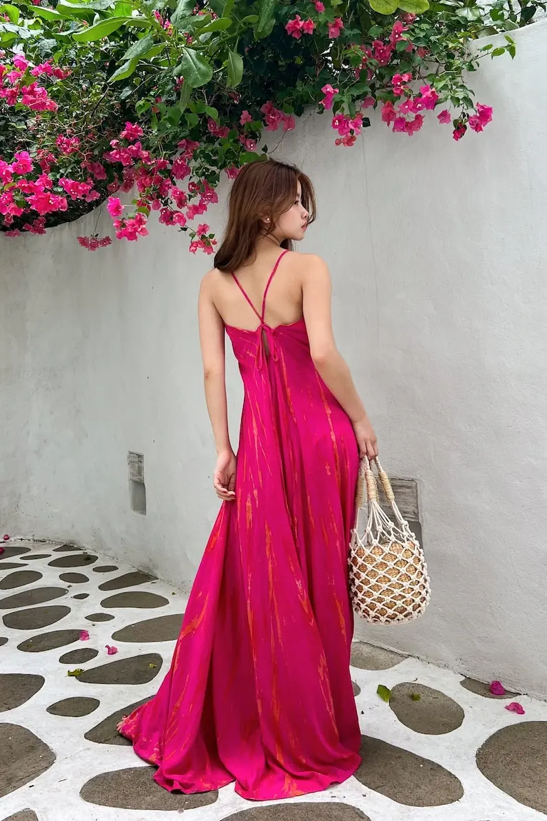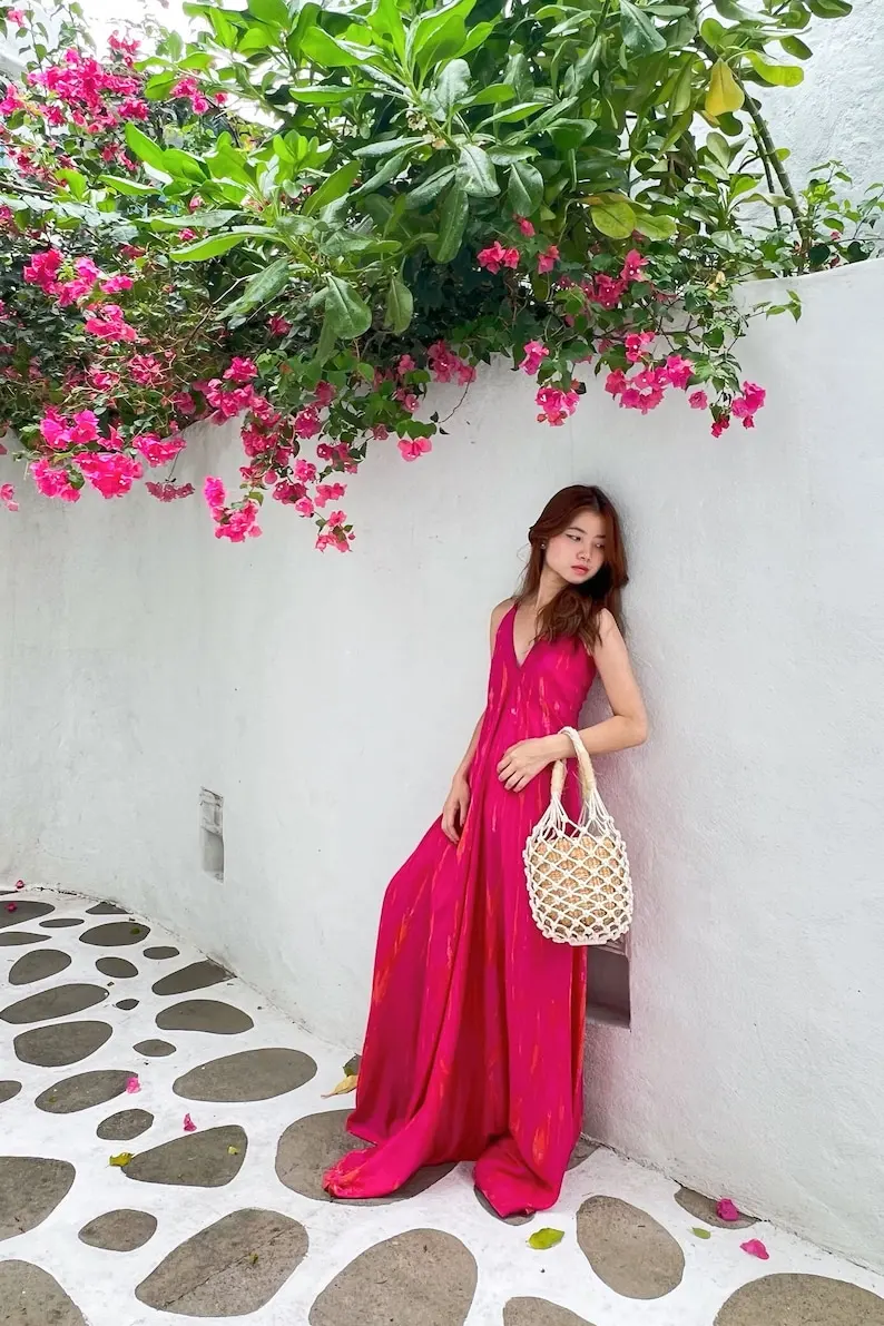 Product Name: V Neck Rayon Boho Maxi Dress Unique Ethnic Luxury Evening Handmade Pattern Trendy Unique Design Free Size Beach Occasion