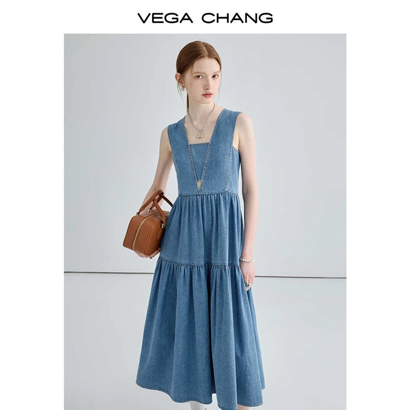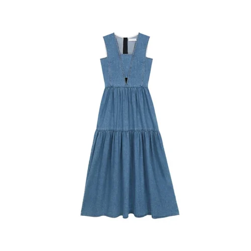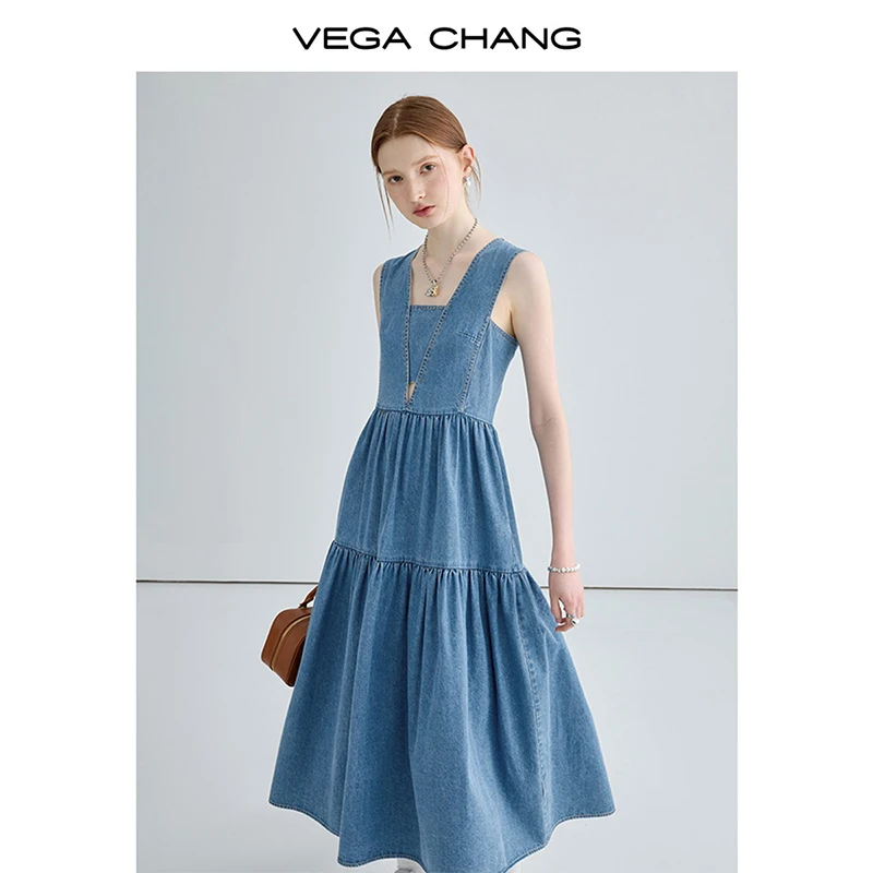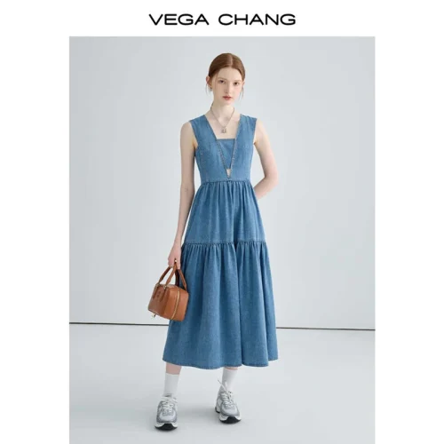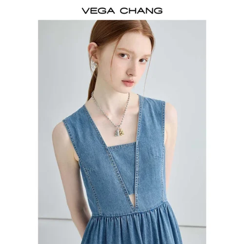 Product Name: VEGA CHANG 2025 Summer Denim Halter Dress Women New French Retro Slimming Long Dress