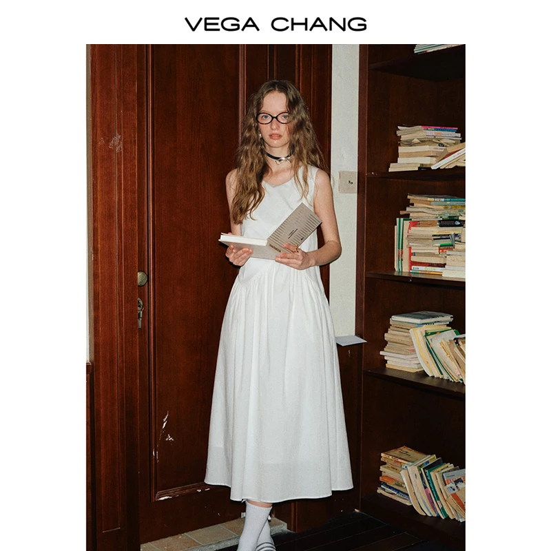 VEGA CHANG Autumn All-match Casual Temperament Irregular Patchwork Sundress White Dress for Women
