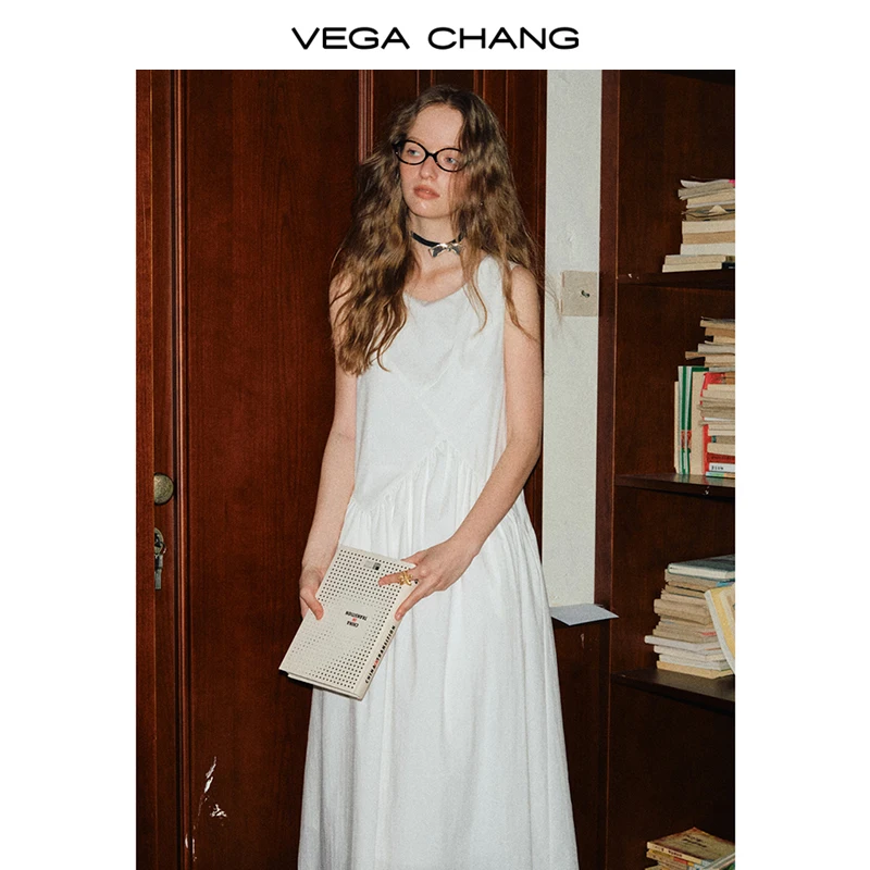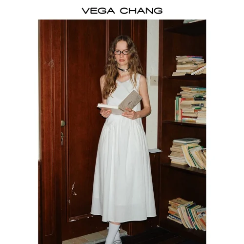 VEGA CHANG Autumn New Women Casual Temperament Irregular Patchwork Sundress White Dress