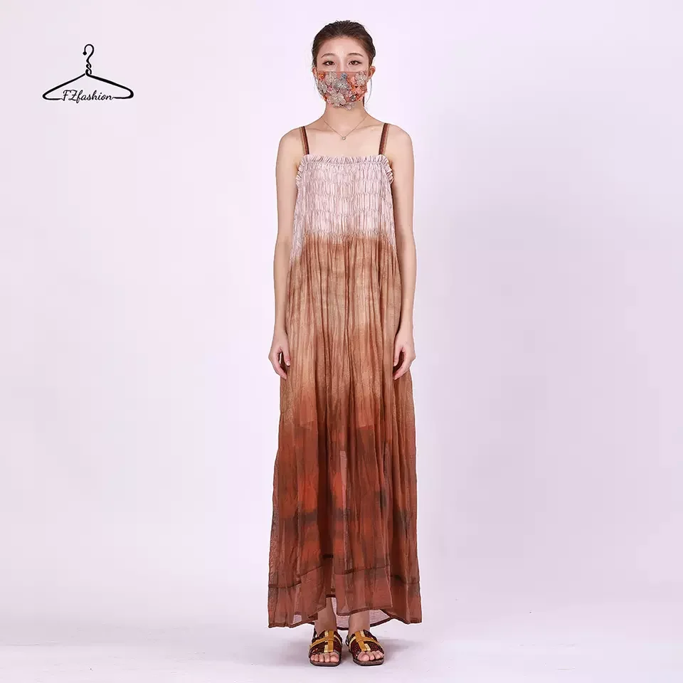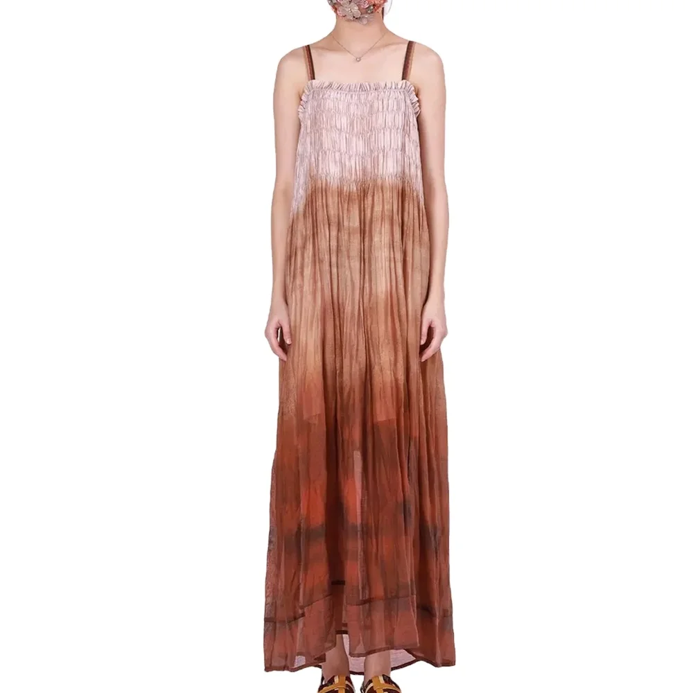 Vestidos Longos Tie-dyed Dresses Spaghetti Strap Long Dress Bohemian Long Backless Sundress