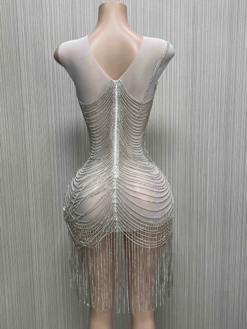 Product Name: Vetements Femme 2022 Crystal Evening Dress White Long Fringe Dress Cargo Mini Skirt Women Sexy Robe De Soiree Mariage Fete