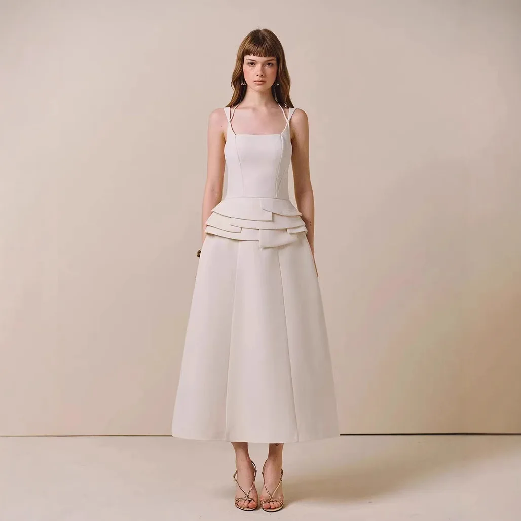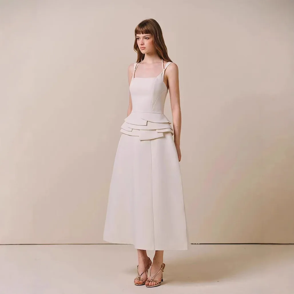 Product Name: Vietnamese Niche New Temperament Elegant Party Dresses High Waist Stacked Sling Long Dress