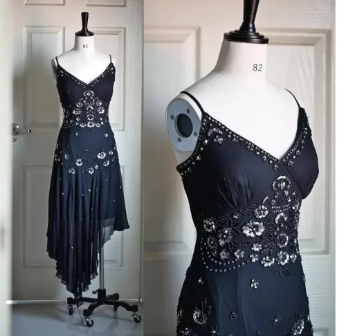 Vintage Elegant Sequin Beaded Sheath Dress Sleeveless Tea-Length O-Neck Poly Mesh Fabric Embroidered Print Formal Party Casual