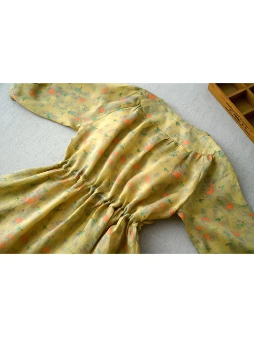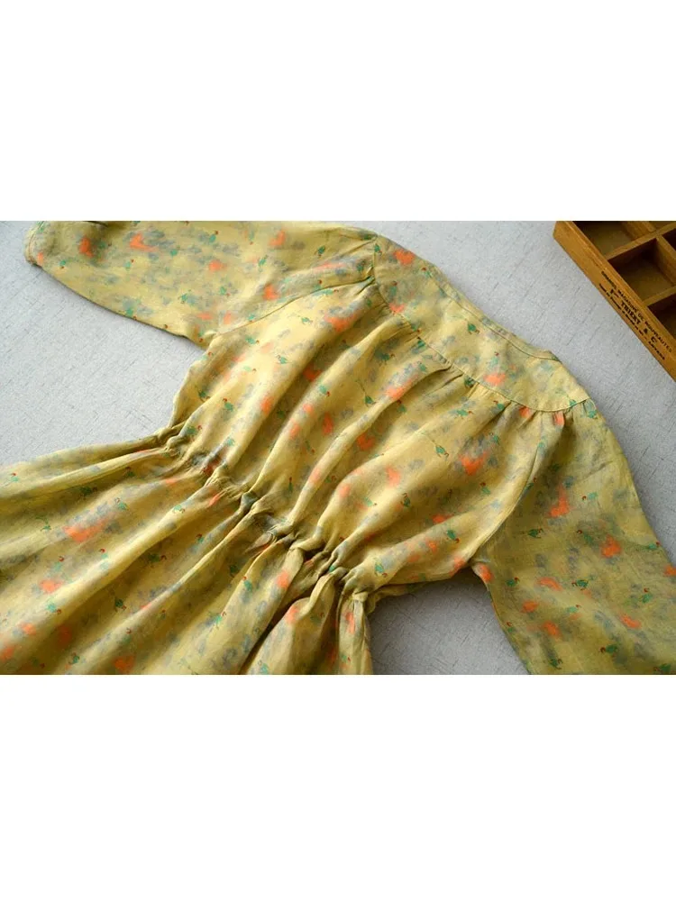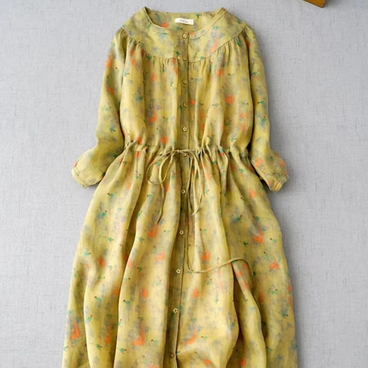 Product Name: Vintage O-Neck Half Sleeve Women Shirt Dresses 2025 New Lace Up Patchwork Single-Breasted Midi Dress Floral Sundress