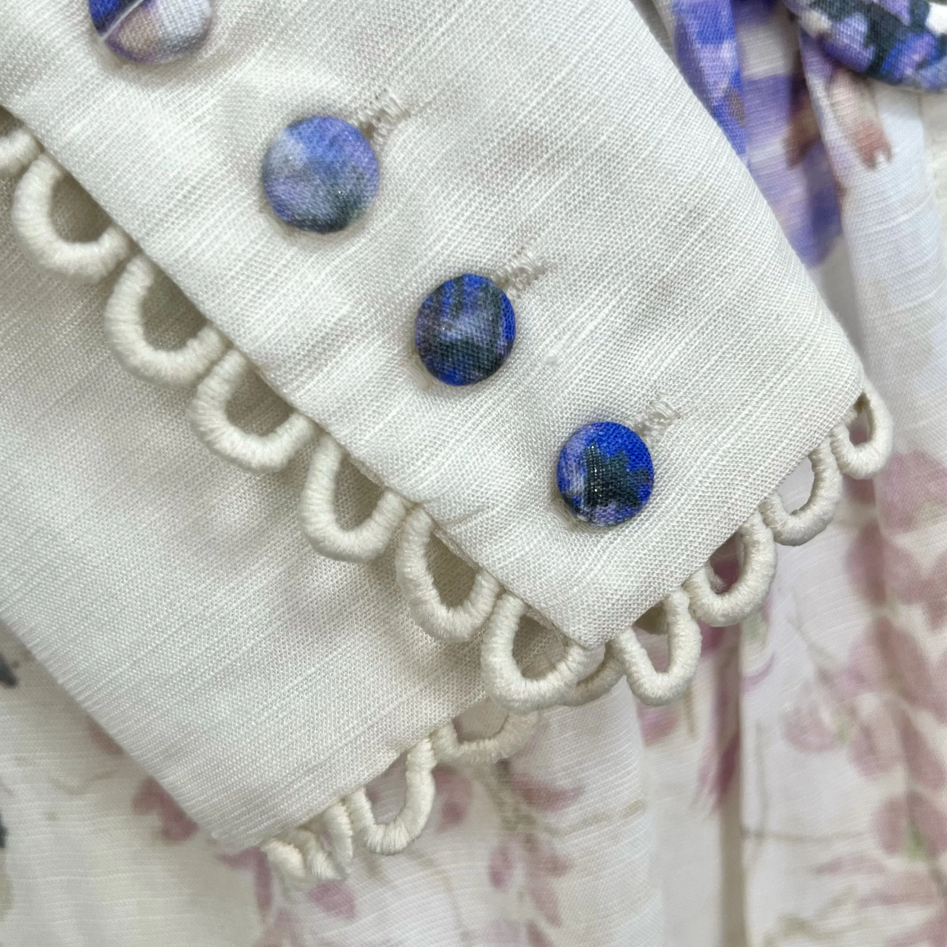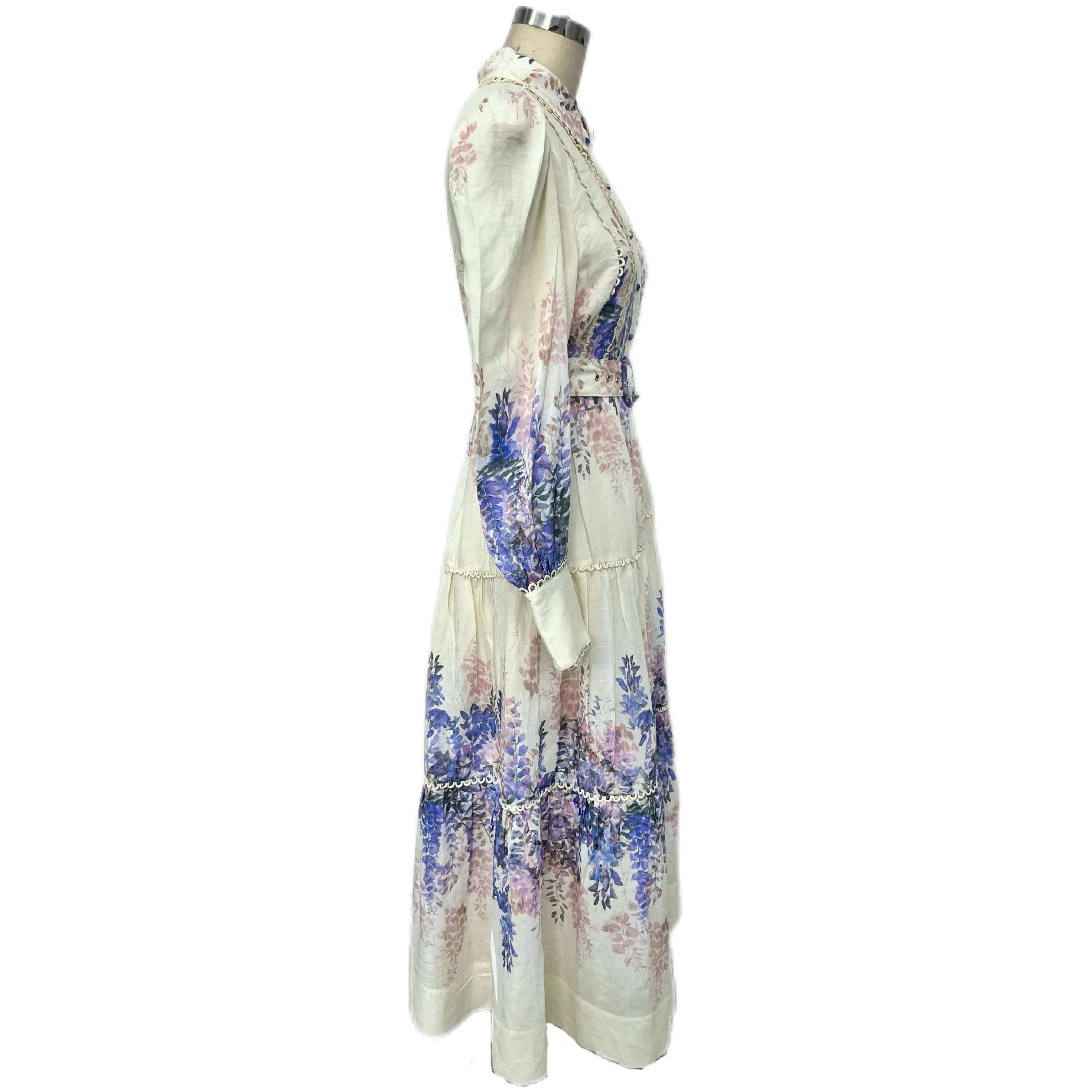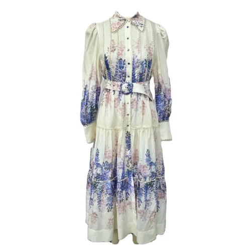 Vintage-inspired A-Line Dress Printed Lantern Long-Sleeved Waistline Elegant Full-Length Skirt Spring Autumn Casual