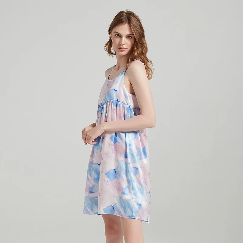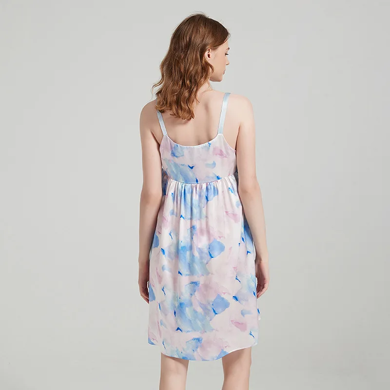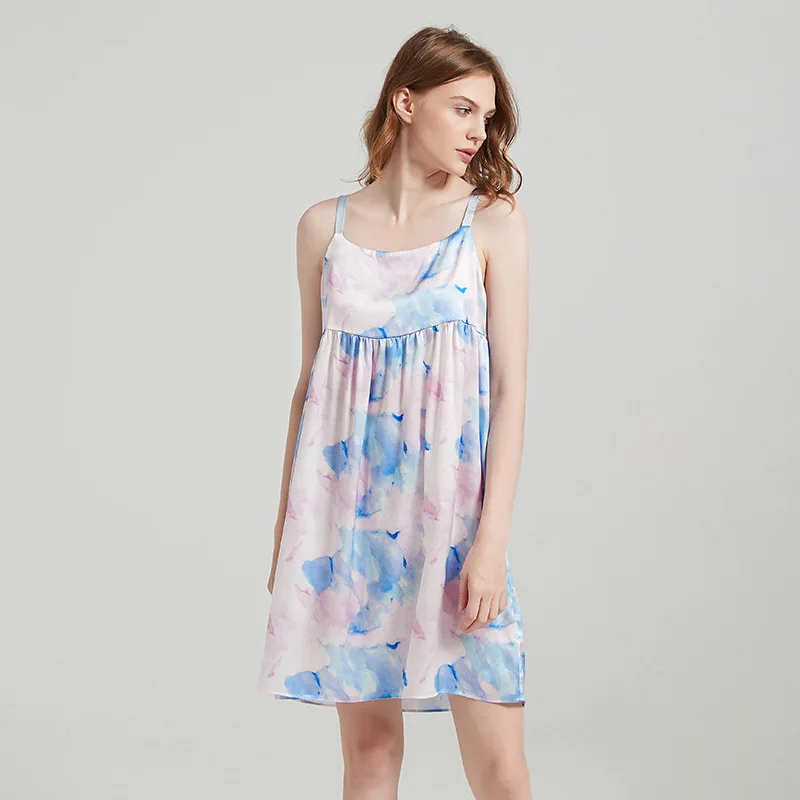 Product Name: Watercolor Printing Women 100% Pure Silk Night Dress for Sleep