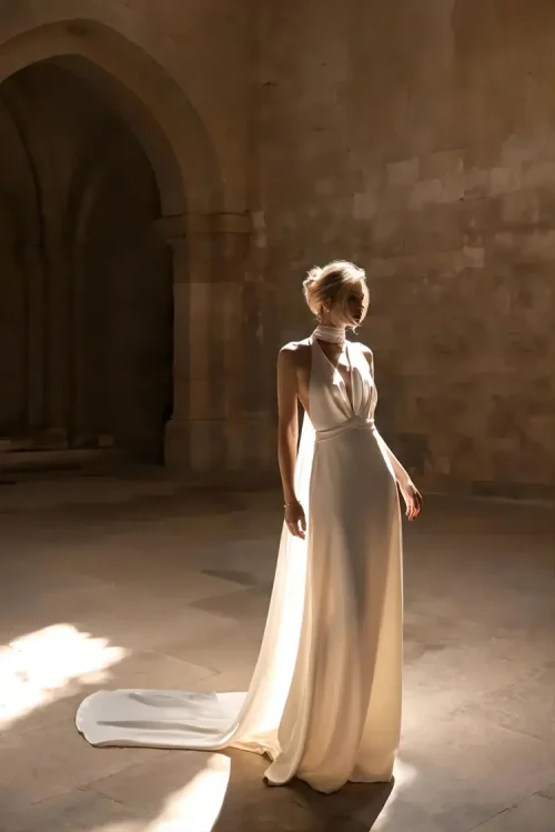 Product Name: White Evening Gown Dress for Women’s Banquet Temperament, Can Be Worn As a Socialite with a Neck Hanging Long Skirt on Weekdays