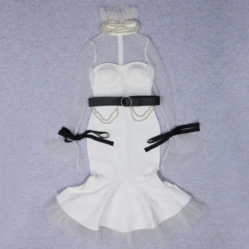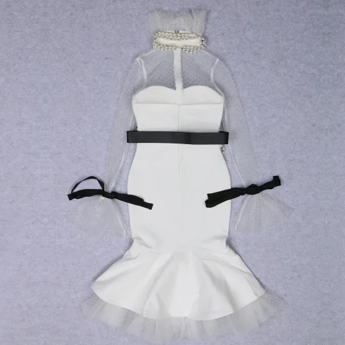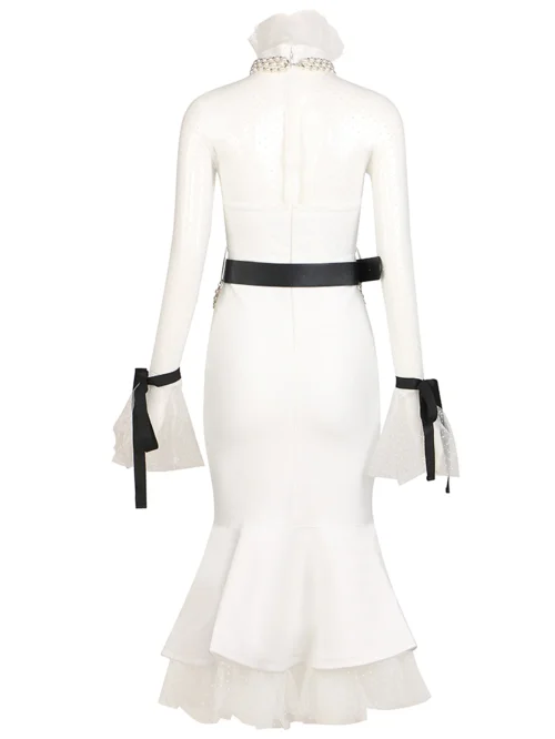 Product Name: White High Neck Lace Decoration Women’s Backless Dinner Elegant Dress