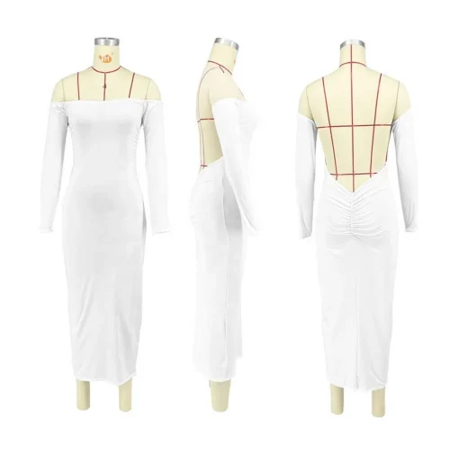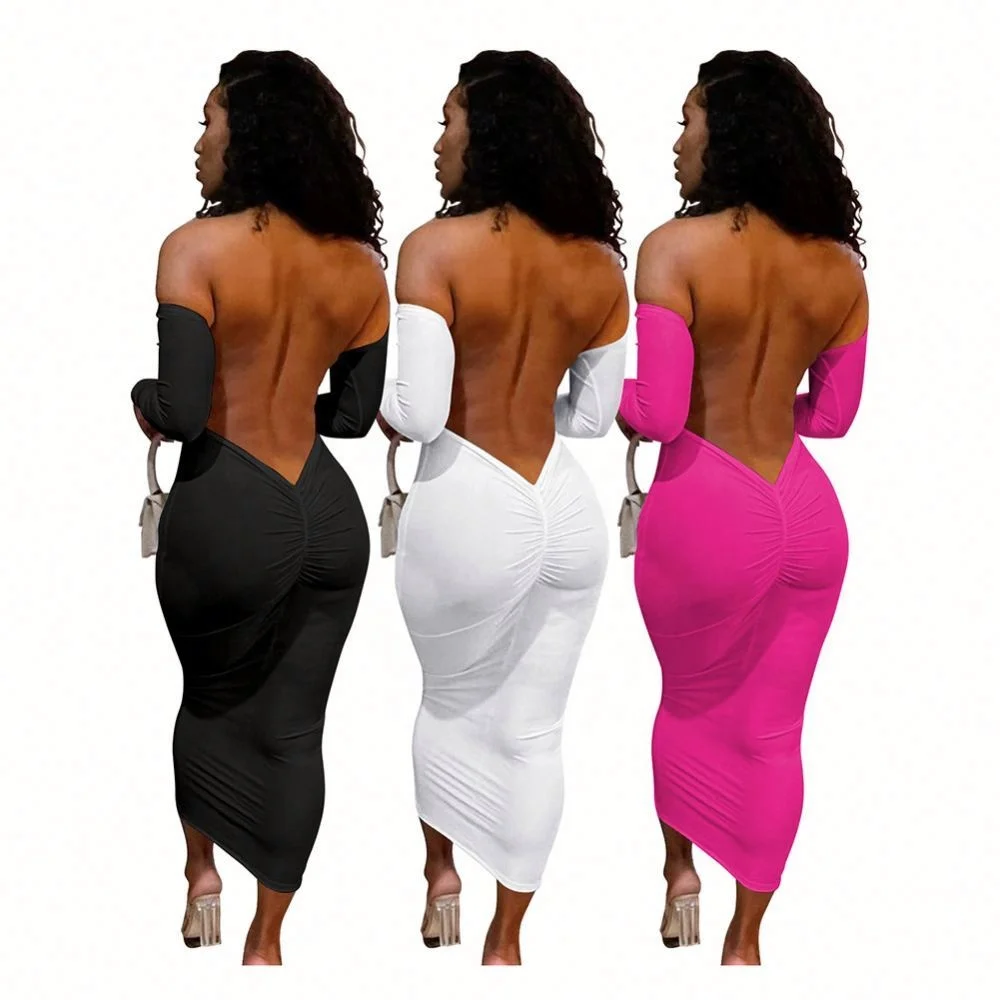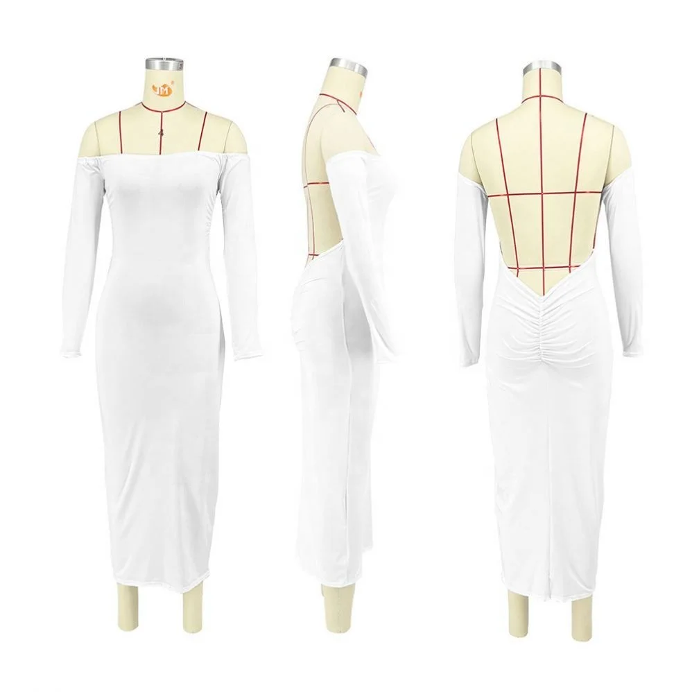 Product Name: Winter New Style Backless Strapless Full Sleeve Long Dresses Women Maxi Casual Ladies Bodycon