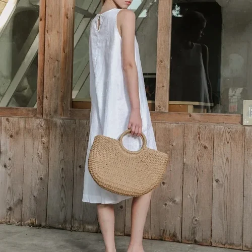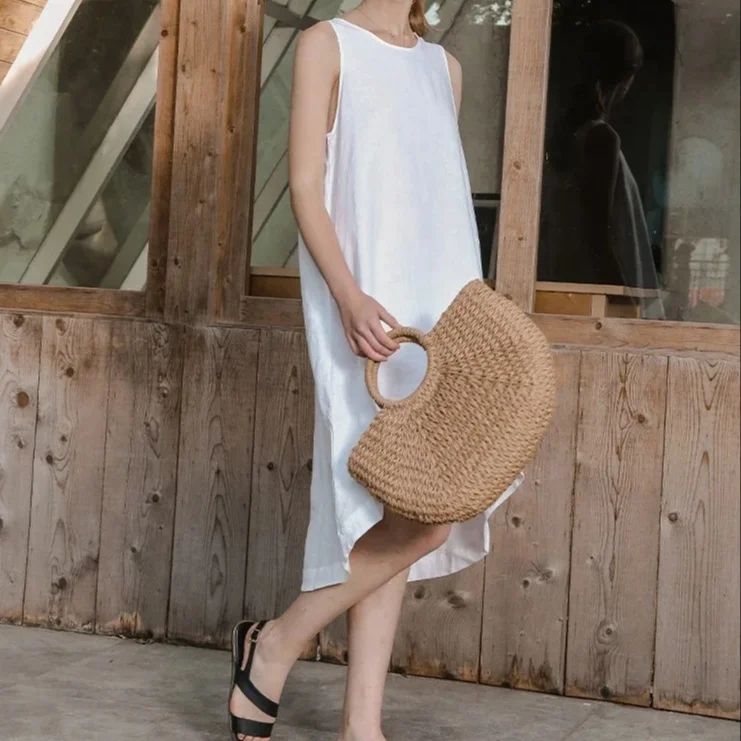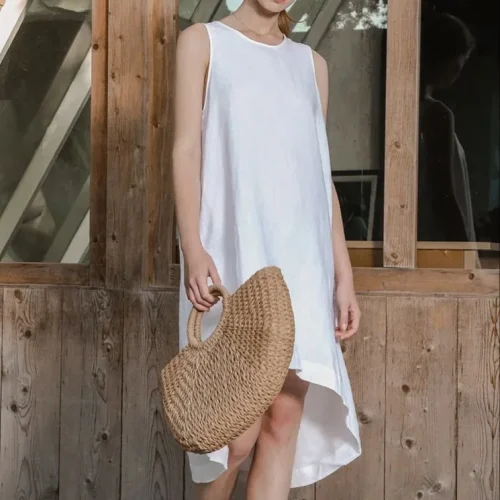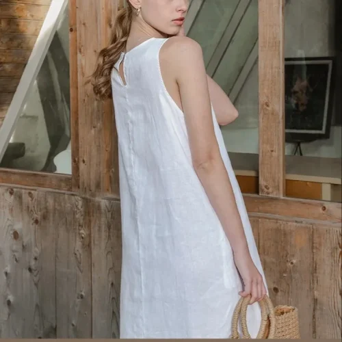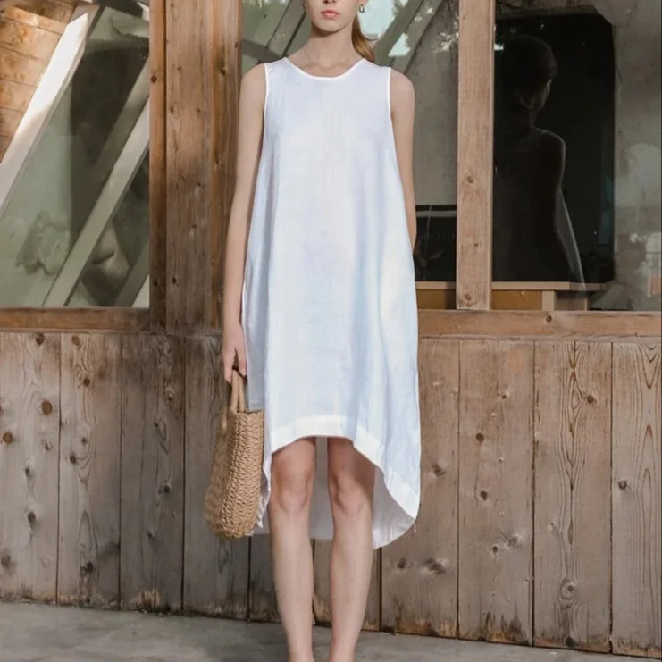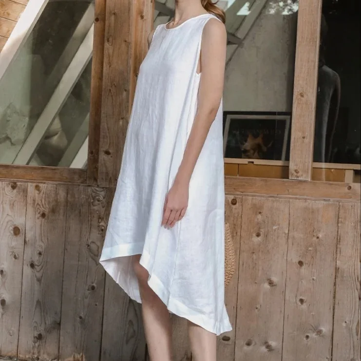 Women 100% Linen High Low Midi Dress With Pockets for Summer Casual Flowy Dress