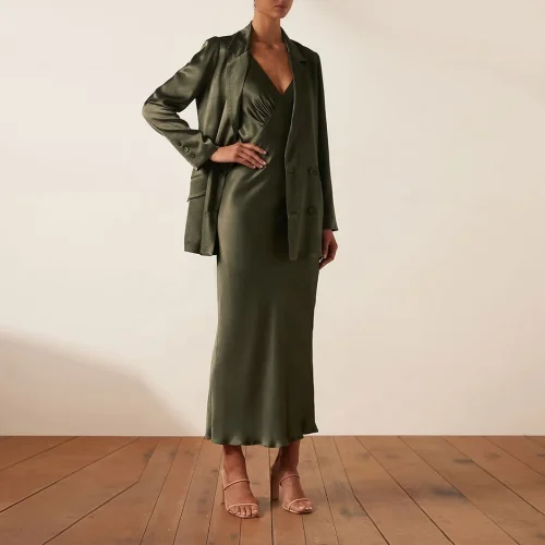 Product Name: Women Breathable Silk Fitted Wide Straps V Neck Maxi Dresses Sundress Vintage Dress Summer
