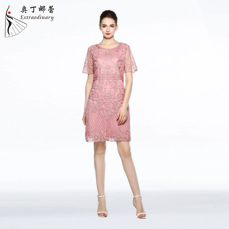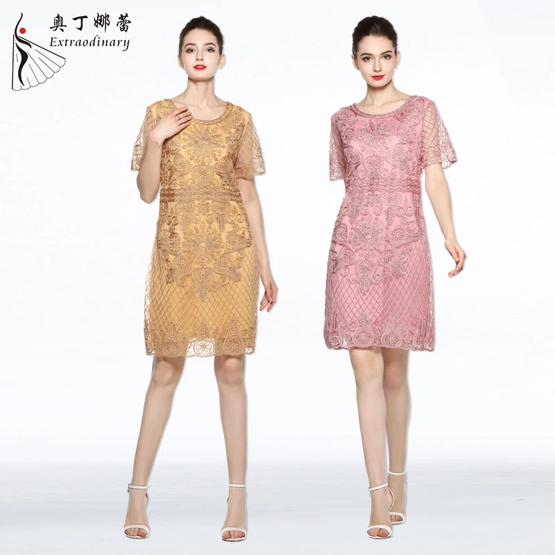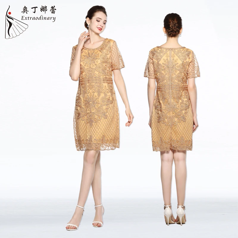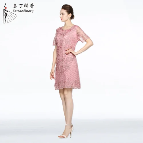 Product Name: Women Elegant Floral Embroidery Casual Dress Party Bride’s Mother Short Dinner Dresses
