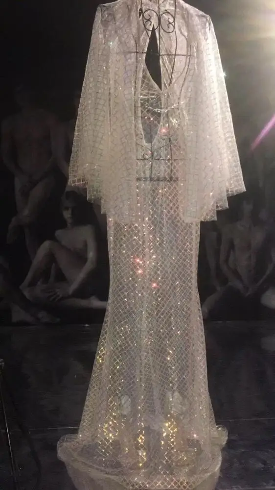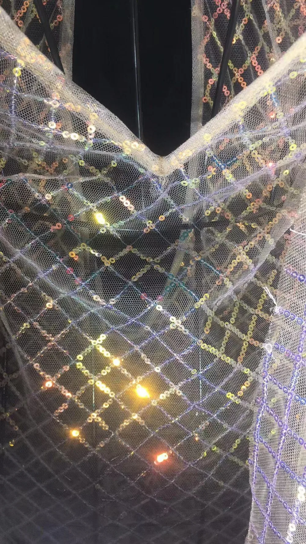 Product Name: Women Sexy Flashing Sequins See Through Club Wear Evening Outfit Party Dance Dress Birthday Party Dress Celebrate Long Dress