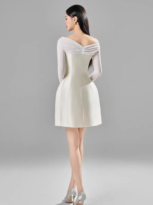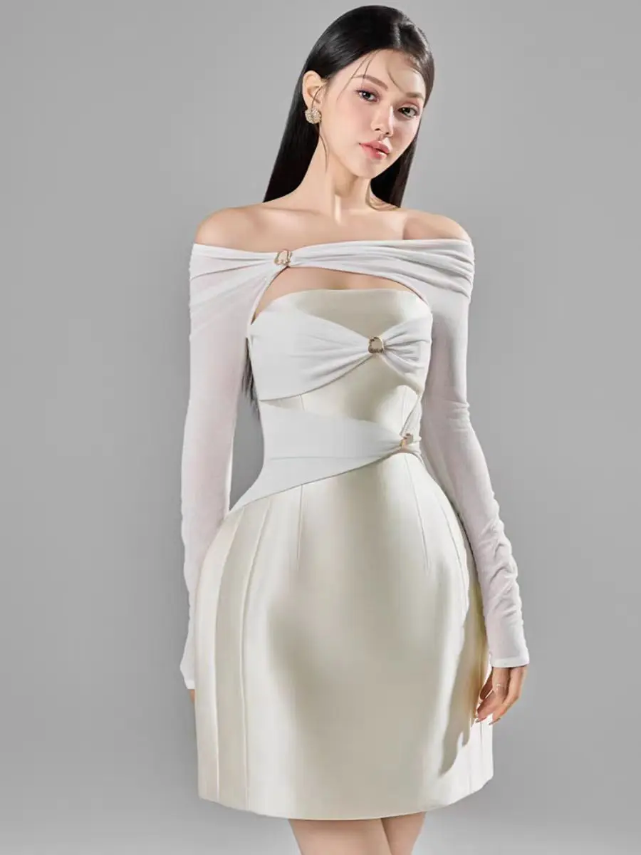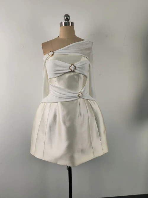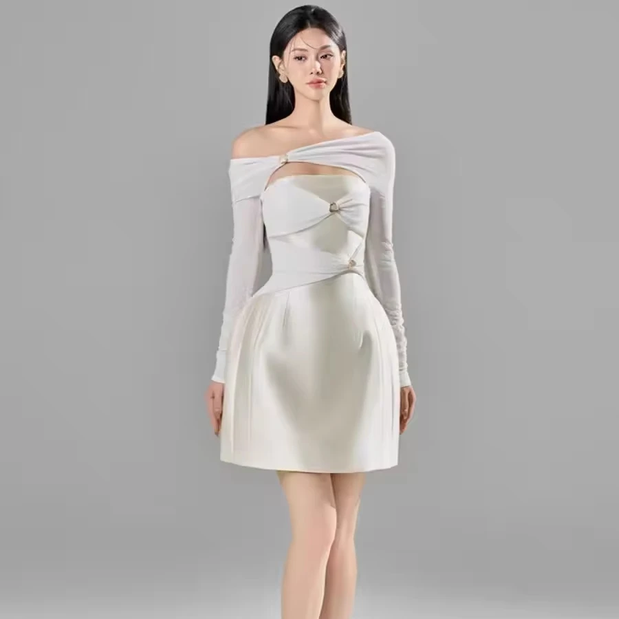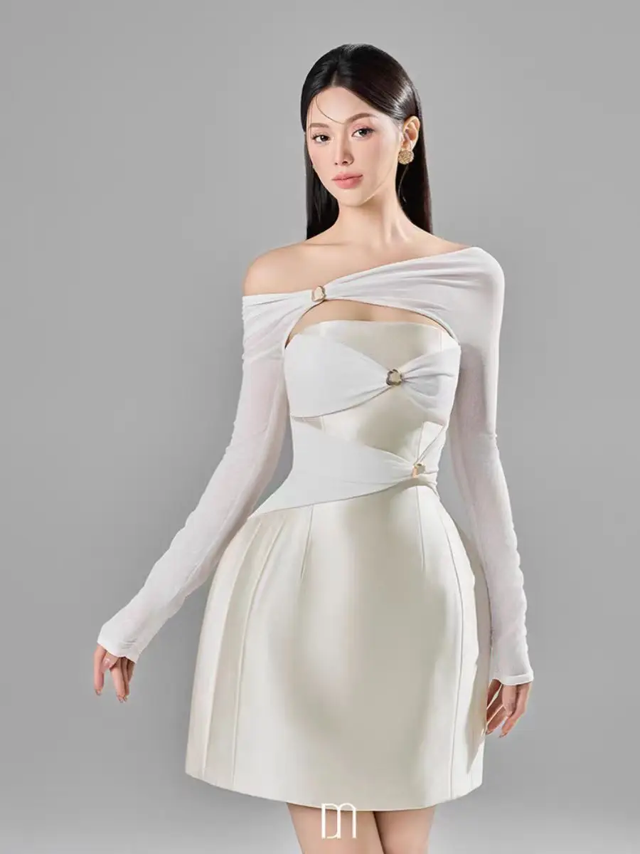 Product Name: Women Short Dress Vietnamese Design Niche One-shoulder Sexy Dress Spring Summer Temperament Elegant Waist Skirt