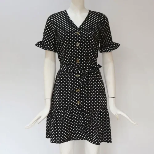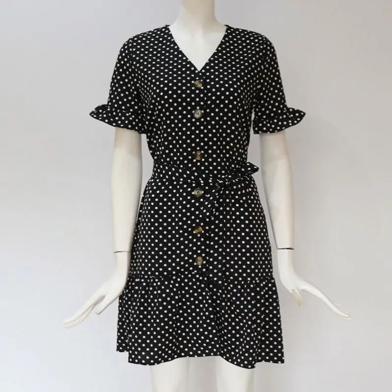 Product Name: Women Summer Beach Chiffon Dress Casual Short Sleeve Polka Dot Dress Boho Mini Party Dress Elegant V Neck Sundress Vestidos