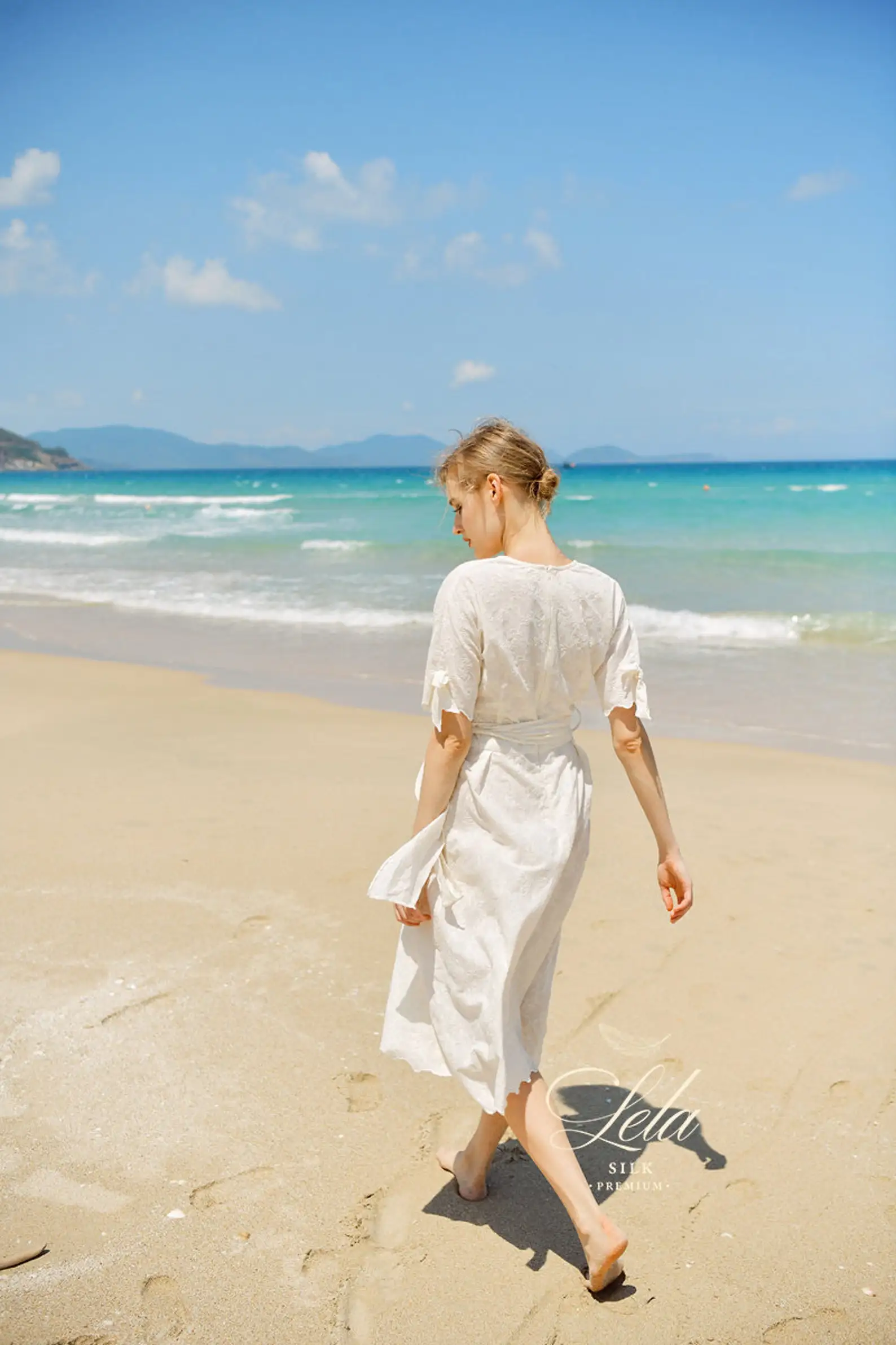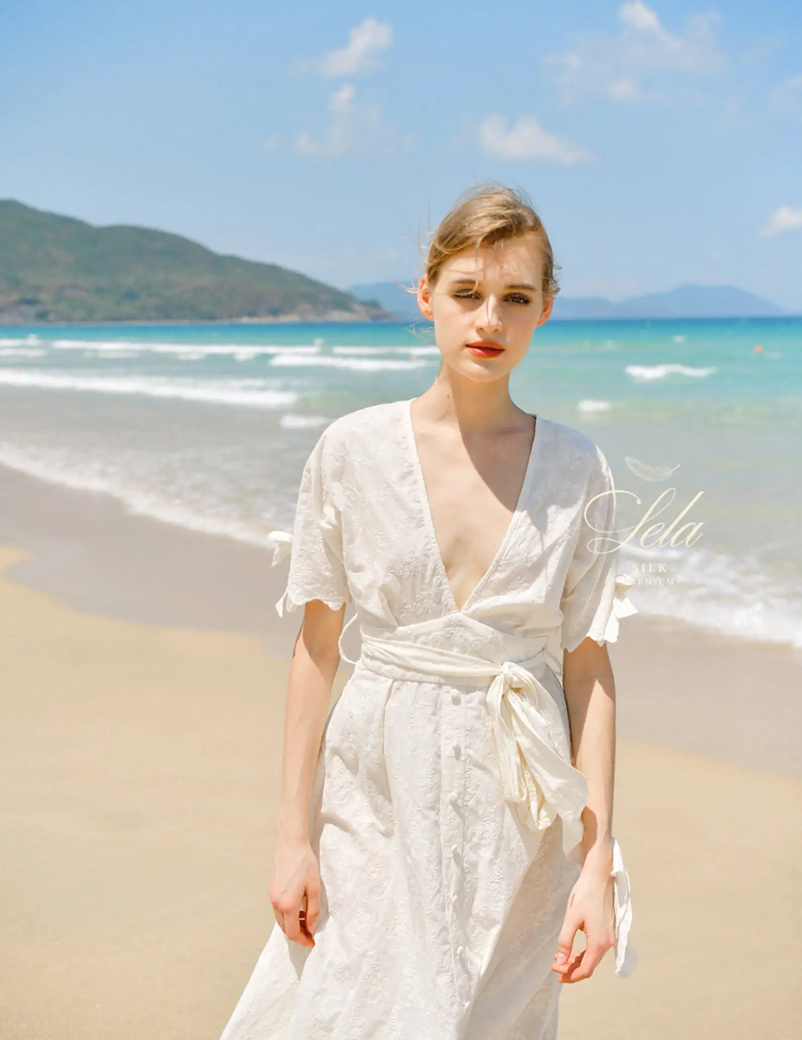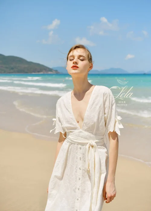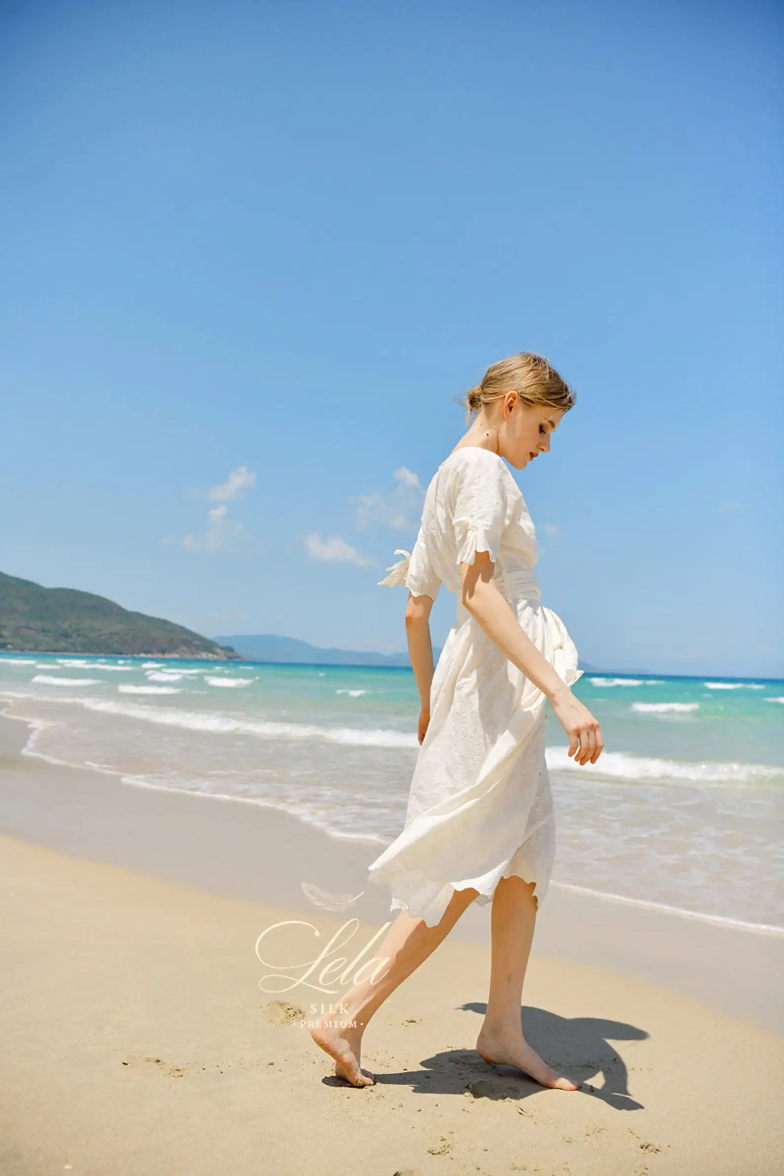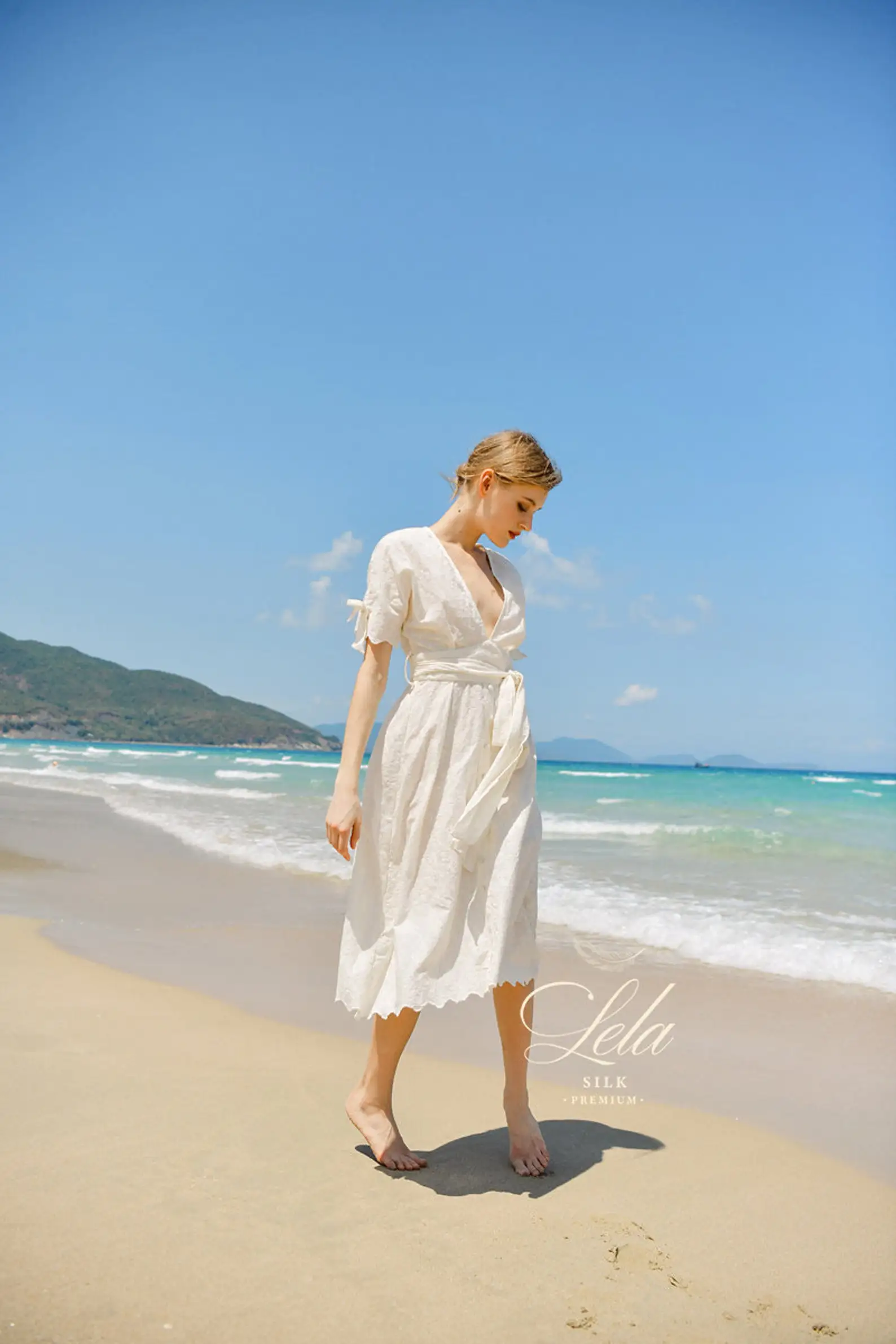 Product Name: Women Summer Cotton Short Sleeve Dress White Cotton Midi Length Dress Casual Sundresses for Women Organic Cotton V- Neck Dress