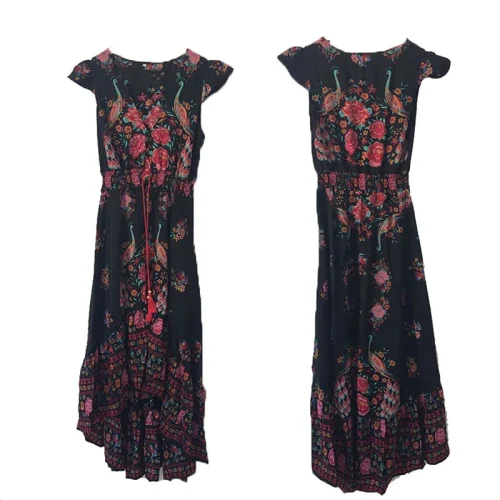 Product Name: Women V-neckline Sexy Floral Rose Bohemian Boho Long Maxi Dress Sundress Travel Beach Dress Front Button Closure Sea Side Dress