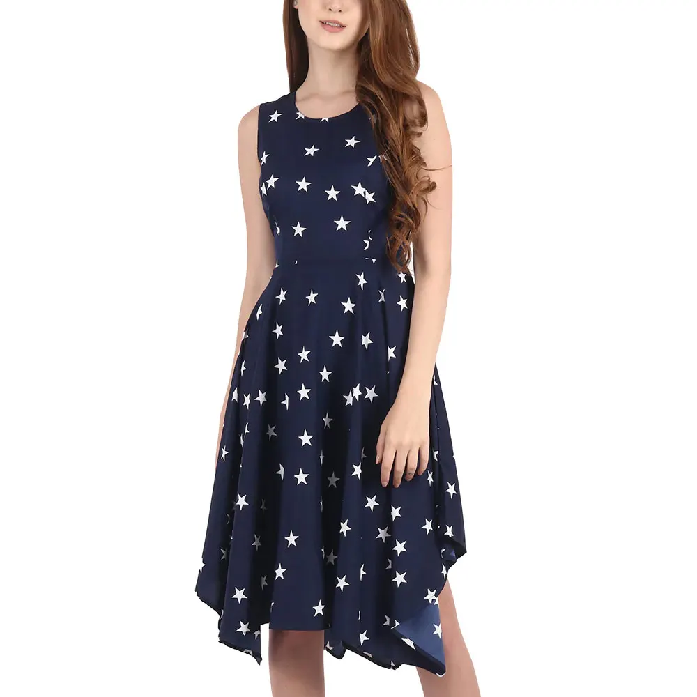 Women Western Style Dresses for Sale New Design Sleeveless O Neck Western Style Dresses for Summer Wear