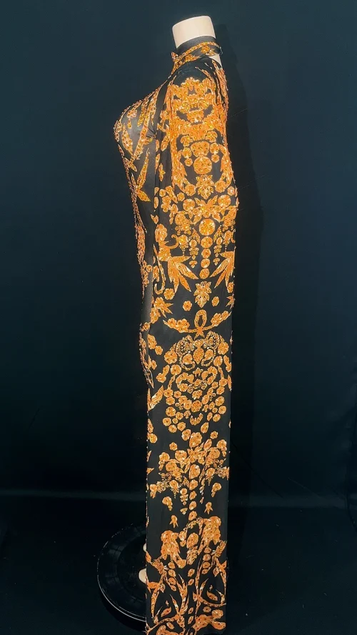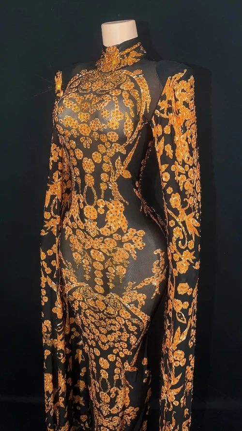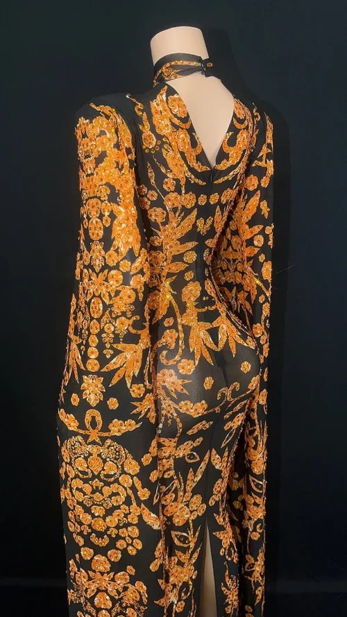 Product Name: Women Women’s Dresses New Arrivals Oronge Crystals Muslim Evening Dresses with Long Sleeves Plus Size Dresses for Banquet