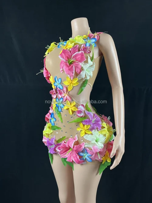 Women Y2234 Women’s 2022 Casual Summer Sets Flower Rhinestone Mesh Floral Abstract Wrap Skirt Mini Hollow Out Birthday Dress