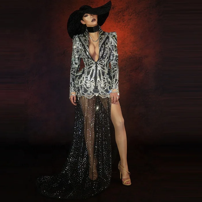 Product Name: Women Y2257 Mesh Trailing Rhinestone Top Lapel Black Club Dresses Woman Dresses Formal Elegant Party Luxury Designer Dresses