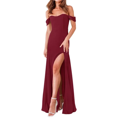 Product Name: Women’s 2023 Off Shoulder Long Party Dress Short Sleeve High Split Bodycon Evening Gown Maxi Dresses