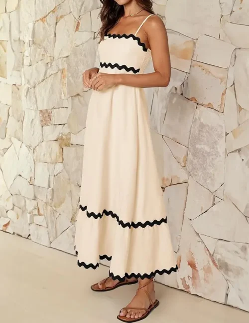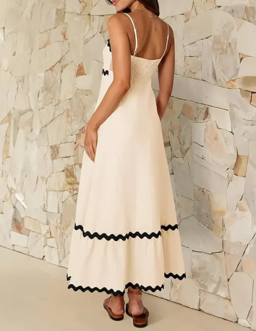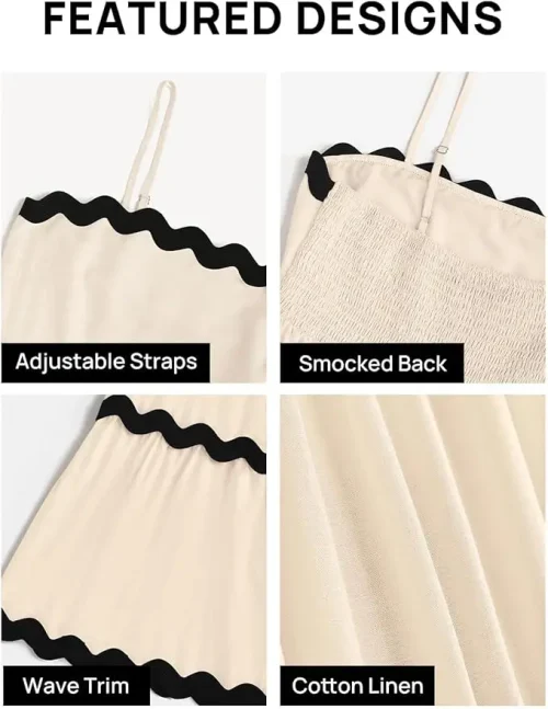 Product Name: Women’s 2025 Summer A-Line Midi Dress Sleeveless Backless Sundress Spaghetti Straps Flowy Smocked Lace Swing Breathable Natural