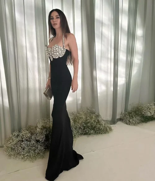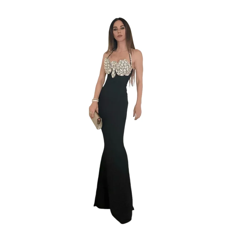 Product Name: Women’s Black for Bandage Dress with Diamond Neck & Backless Design Sexy Stage Performance Casual Dresses