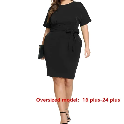 Product Name: Women’s Bodycon Pencil Dress Office Wear to Work Dresses with Pocket Belt Women’s Curved Waist Seam Crepe Workwear Dress