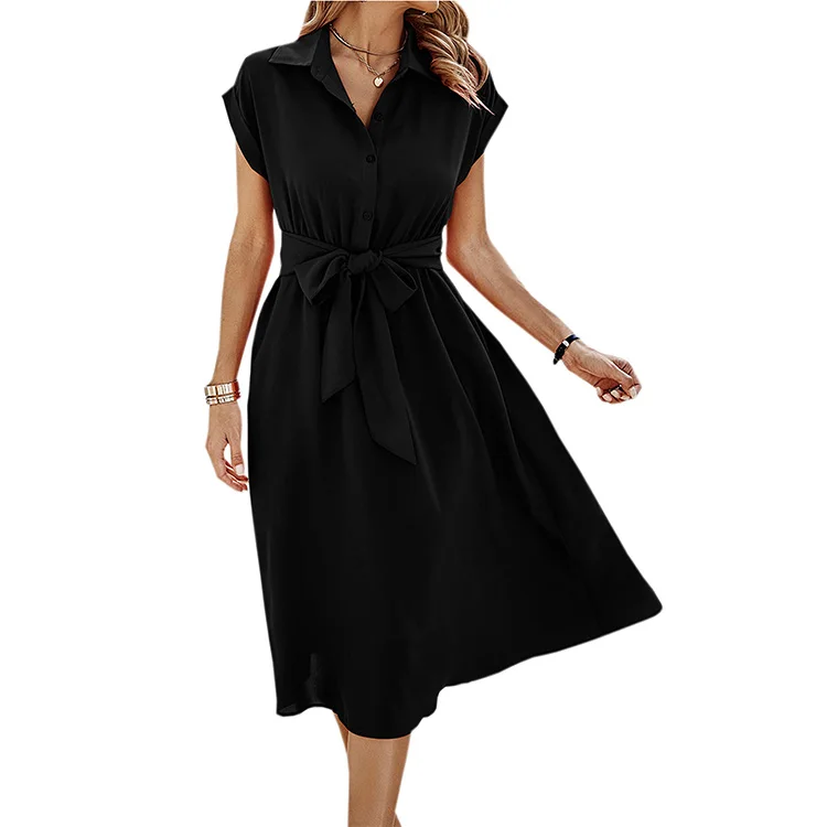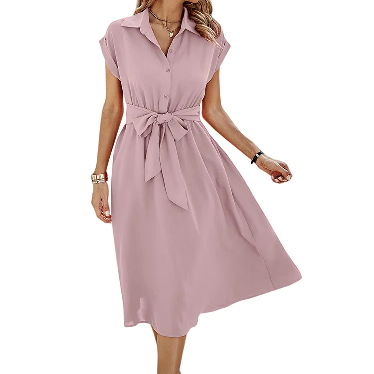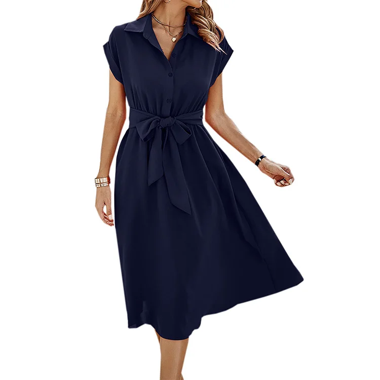 Product Name: Womens Casual Midi Dresses Solid Turn Down Neck Short Sleeve Button Shirt Dress With Pockets for Spring Summer