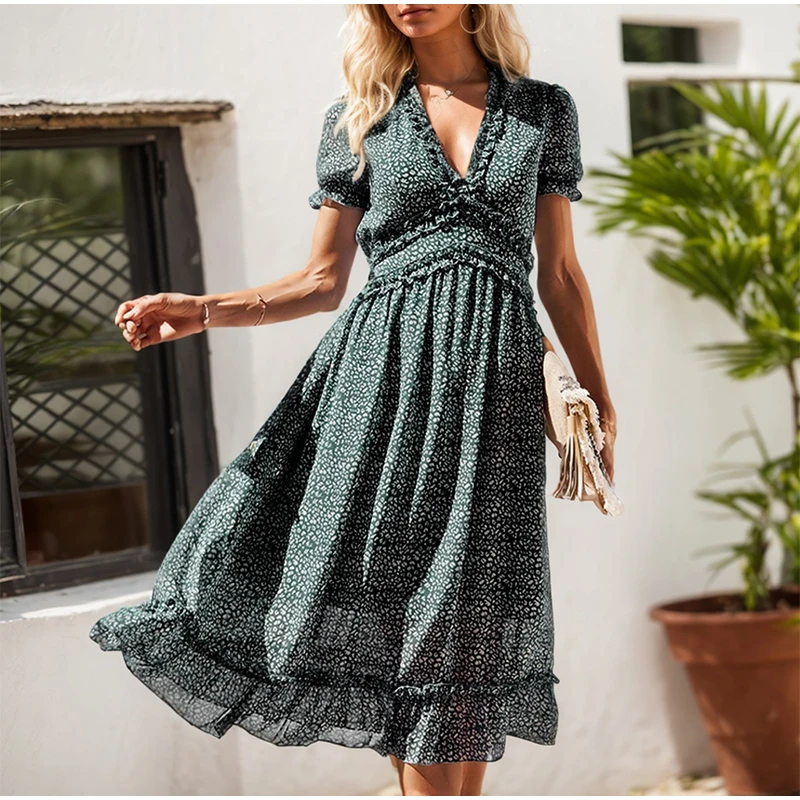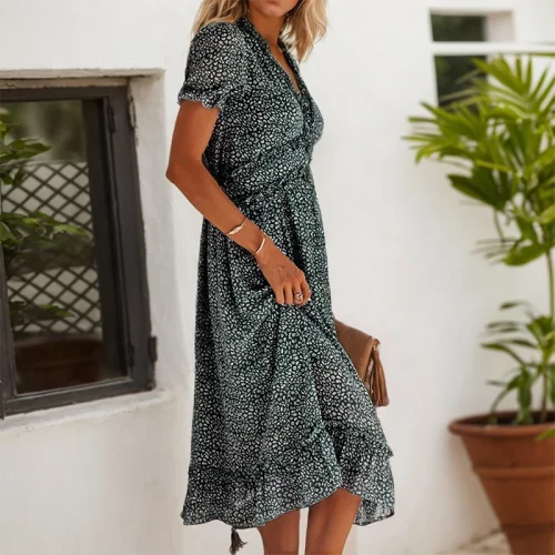 Product Name: Women’S Casual Short Sleeve Floral Print and Elegant Temperament Waist Dress Summer Dresses for Tall Bohemian Dress