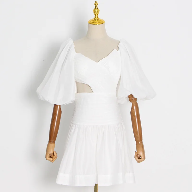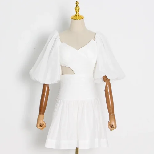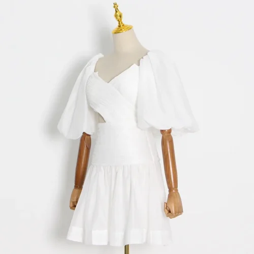 Product Name: Women’s Cocktail Dress Lantern Sleeve Cut Design V-Neck Mini Party Summer Dress Woven Dinner Solid Model Casual Modest Style S-L
