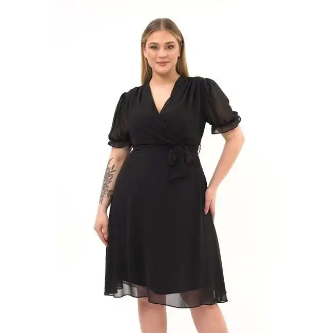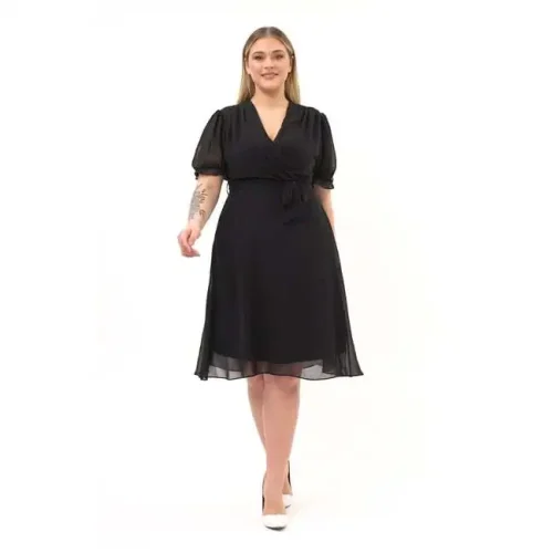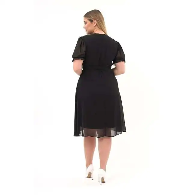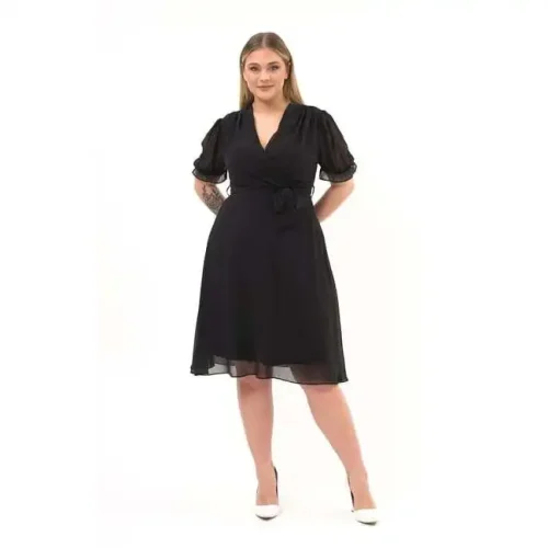 Women’s Double Breasted Midi Length Chiffon Dress Plus Size Polyester Belted Style 4255/110 Premium Quality Stylish Trendy Sexy Casual Wear