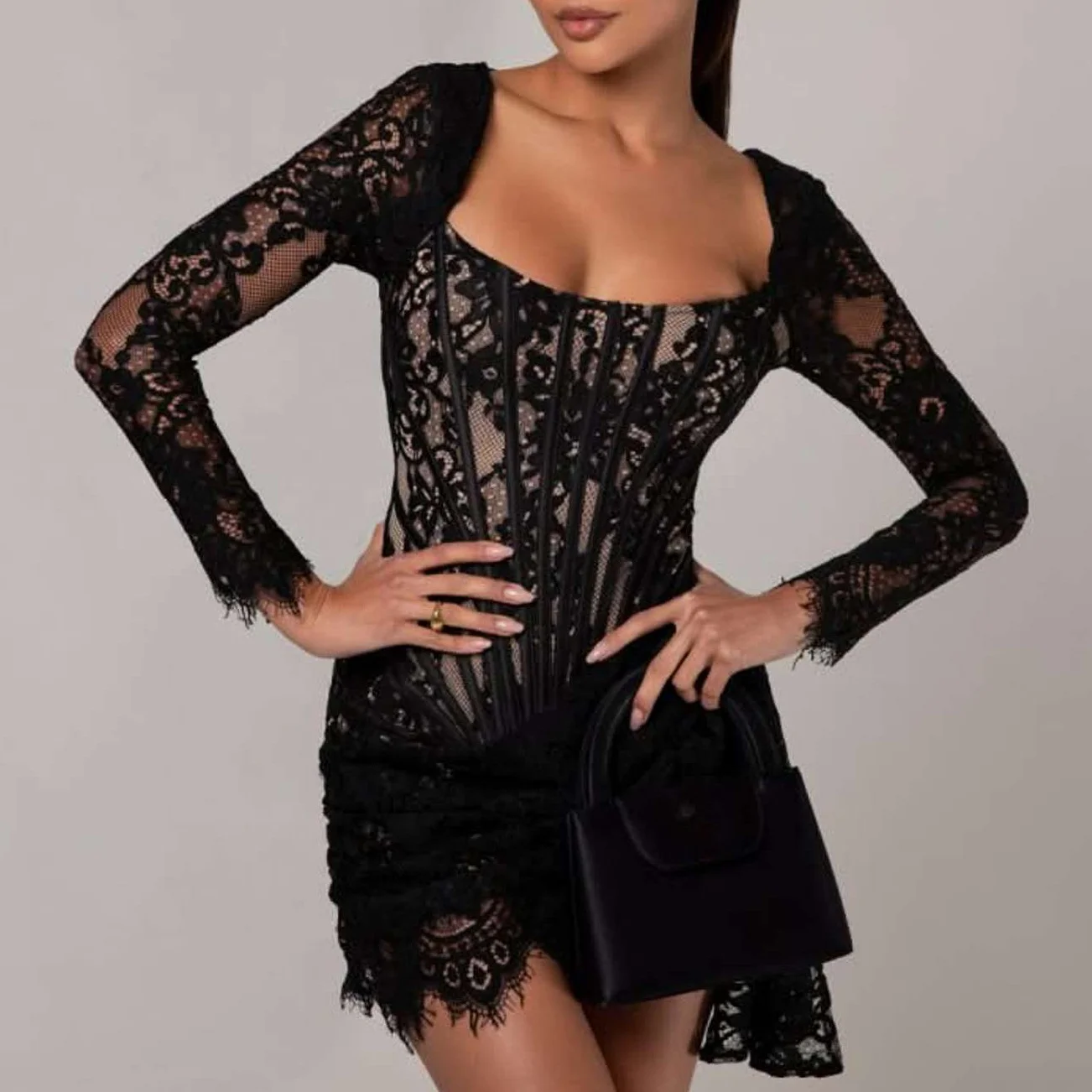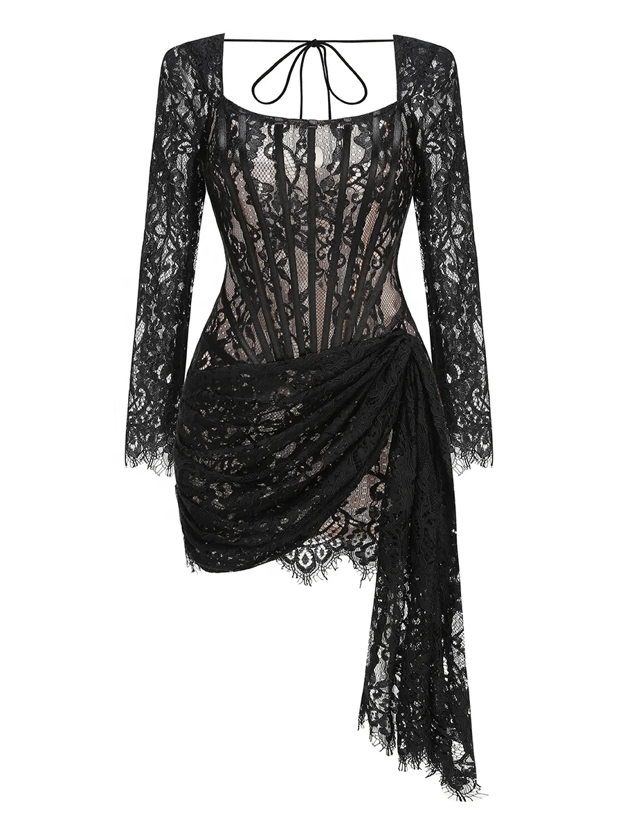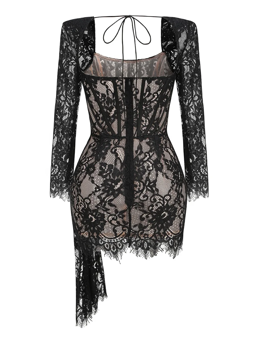 Product Name: Women’s Elegant Lace Luxury Evening Dress Sexy Long Sleeves Formal Occasion Dresses Birthday Evening Cocktail Party Dress