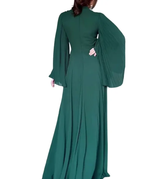 Product Name: Women’s Elegant Pleated Design Long Dress Floral Embroidery Ball Gown Silhouette Chiffon Spring Dot Ruffles Belt for Parties