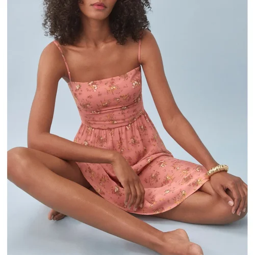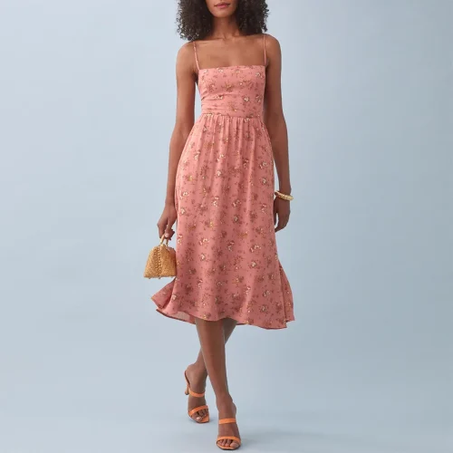 Women’s Elegant Vintage Floral Print Midi Sundress Spaghetti Strap Sleeveless Beach Vacation Woven Front Digital Chiffon Natural