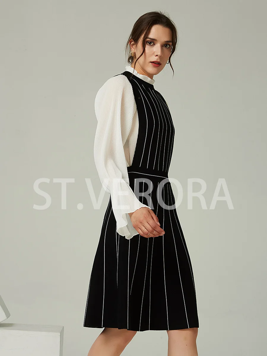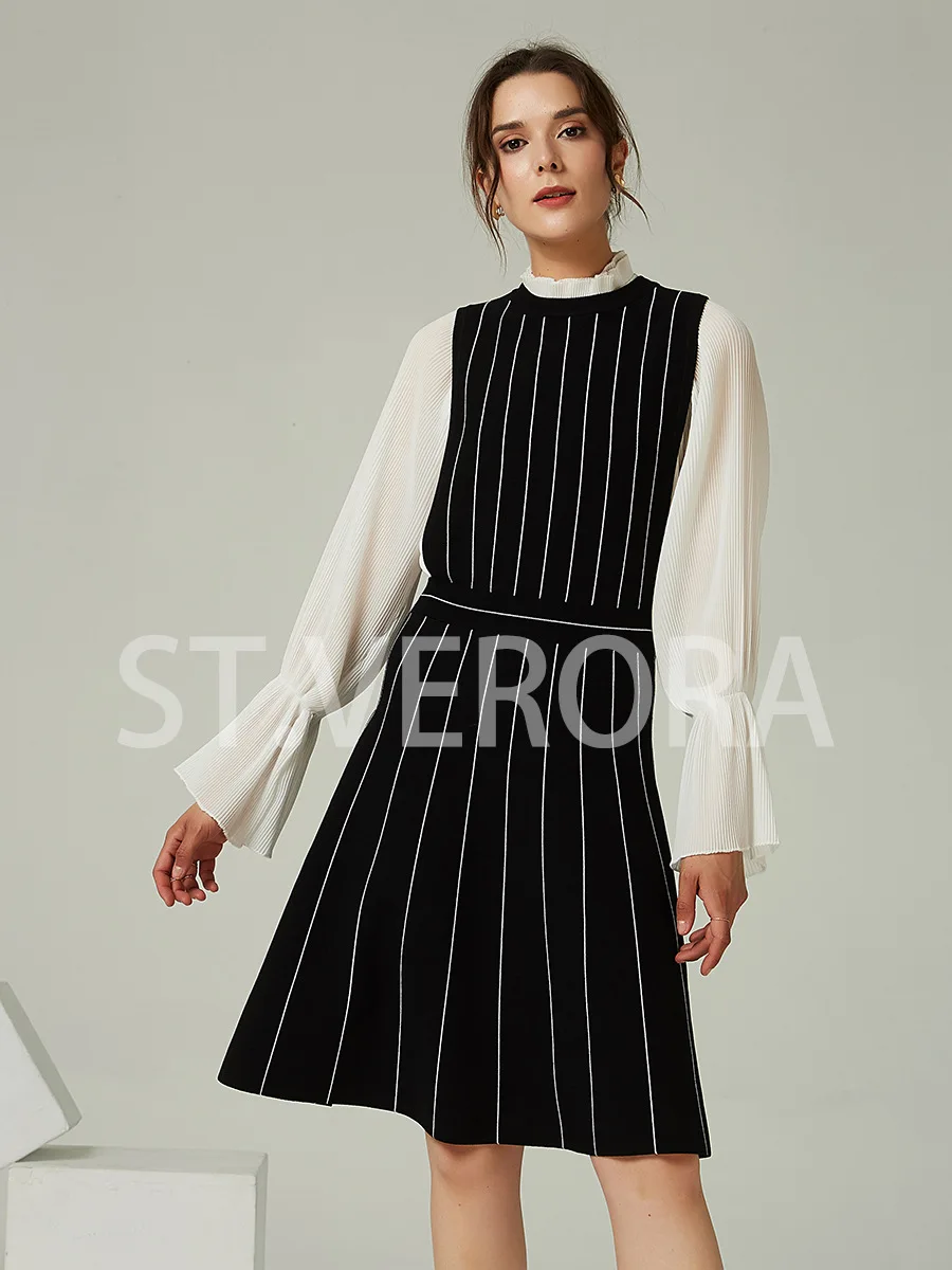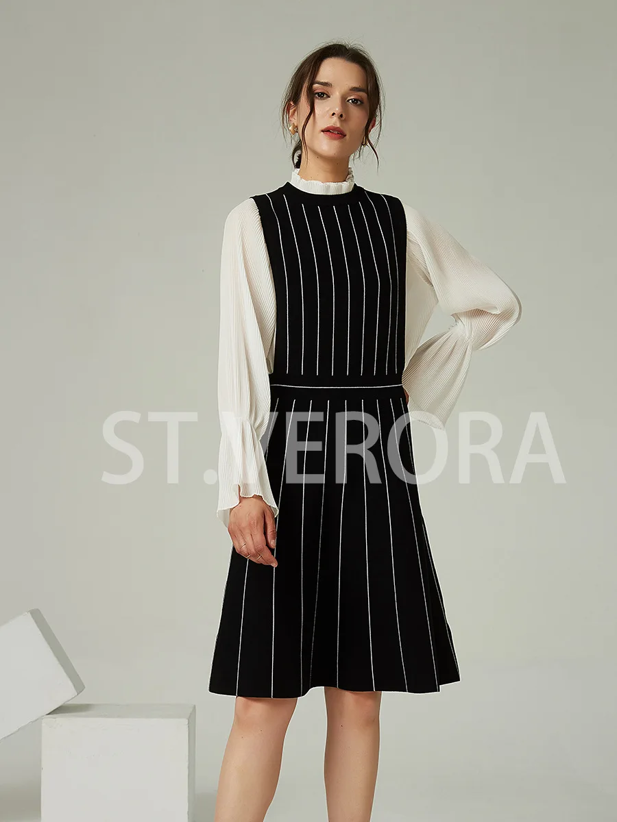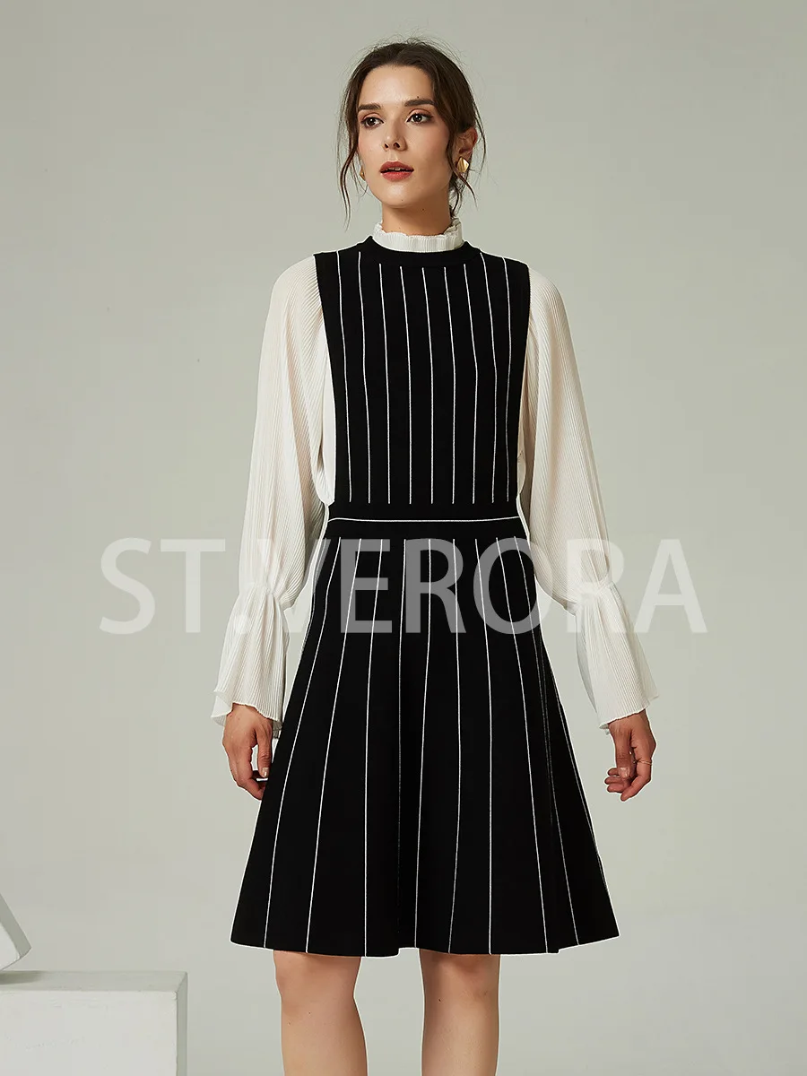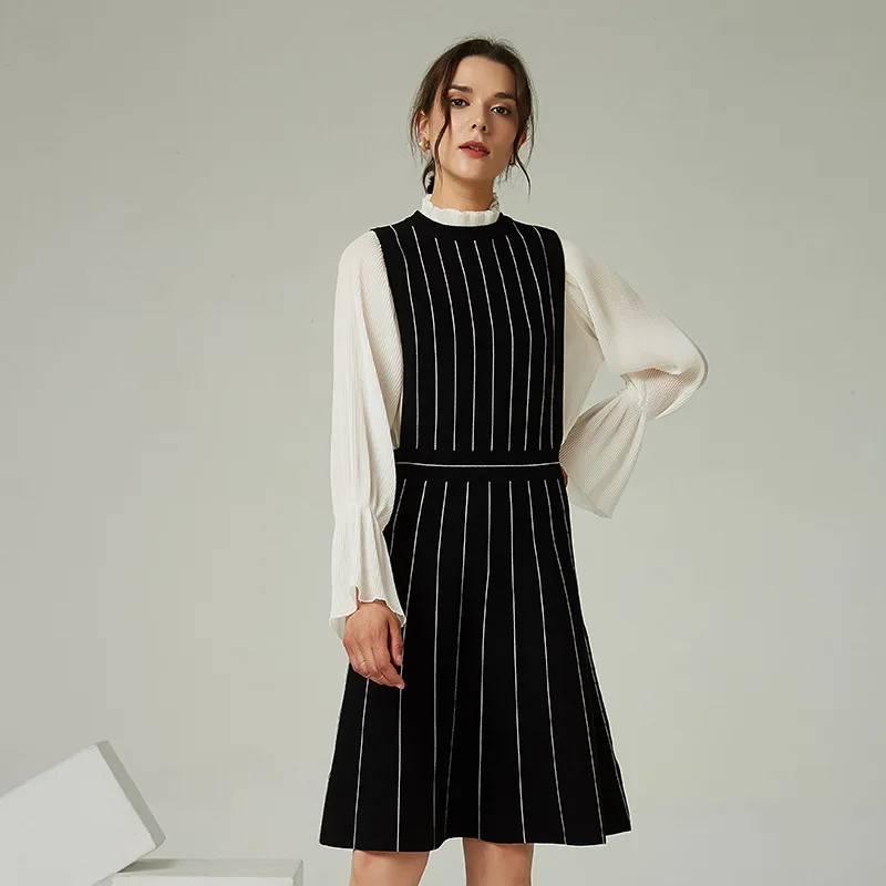 Product Name: Women’s Fashion Midi Knitted Dress Striped Pattern Sweater Woven Wollsted Fabric Natural Ropa De Mujer Roupas Femininas