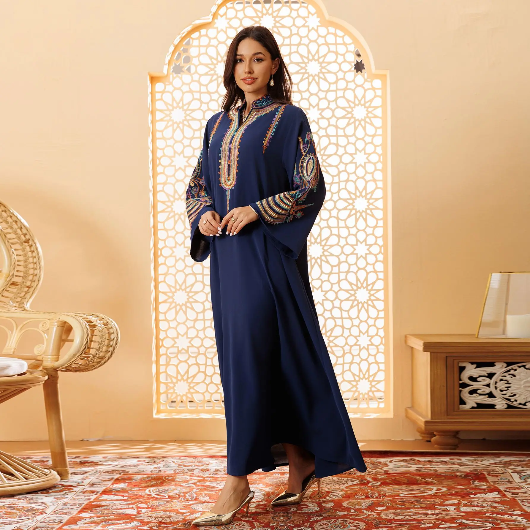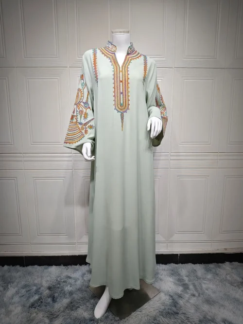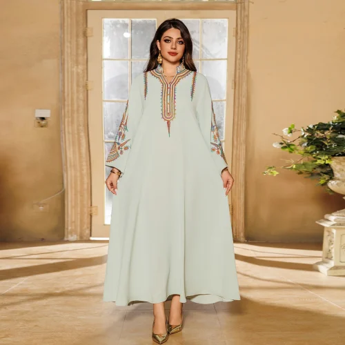 Women’s New Independent Station XXL Embroidered Rope Abaya High Polyester Modest Casual Pullover Dress Robe Middle East Muslim