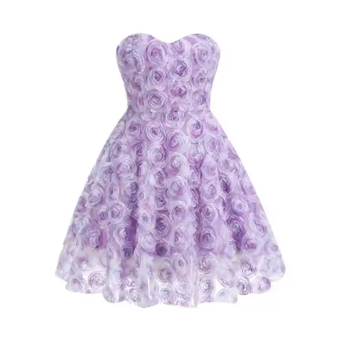 Product Name: Women’s Purple Fairy-Style Short Evening Gown Sensual Sweet Off-the-Shoulder Dress 3D Roses Beading Decoration izable Size
