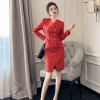 Women’S Sexy Elegant Luxury Dress Crystal Tassel Sequin Patchwork Lace Red Tight Mini Dress With Gloves Christmas New Year Robe