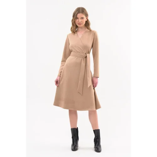 Product Name: Women’s Suede Belted Double Breasted Collar Detailed Flared Midi Length Winter Dress 4407/110 Sexy Casual Wear