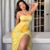 Product Name: Women’s Summer Boho Dress V Neck Sleeveless Sundress Casual Floral Print A-Line Pleated Hem Midi Beach Dress At Best Quality
